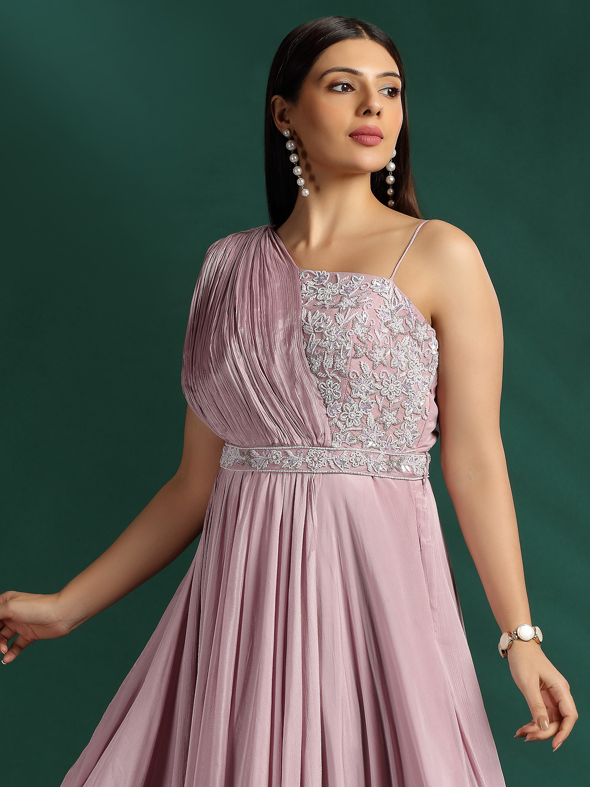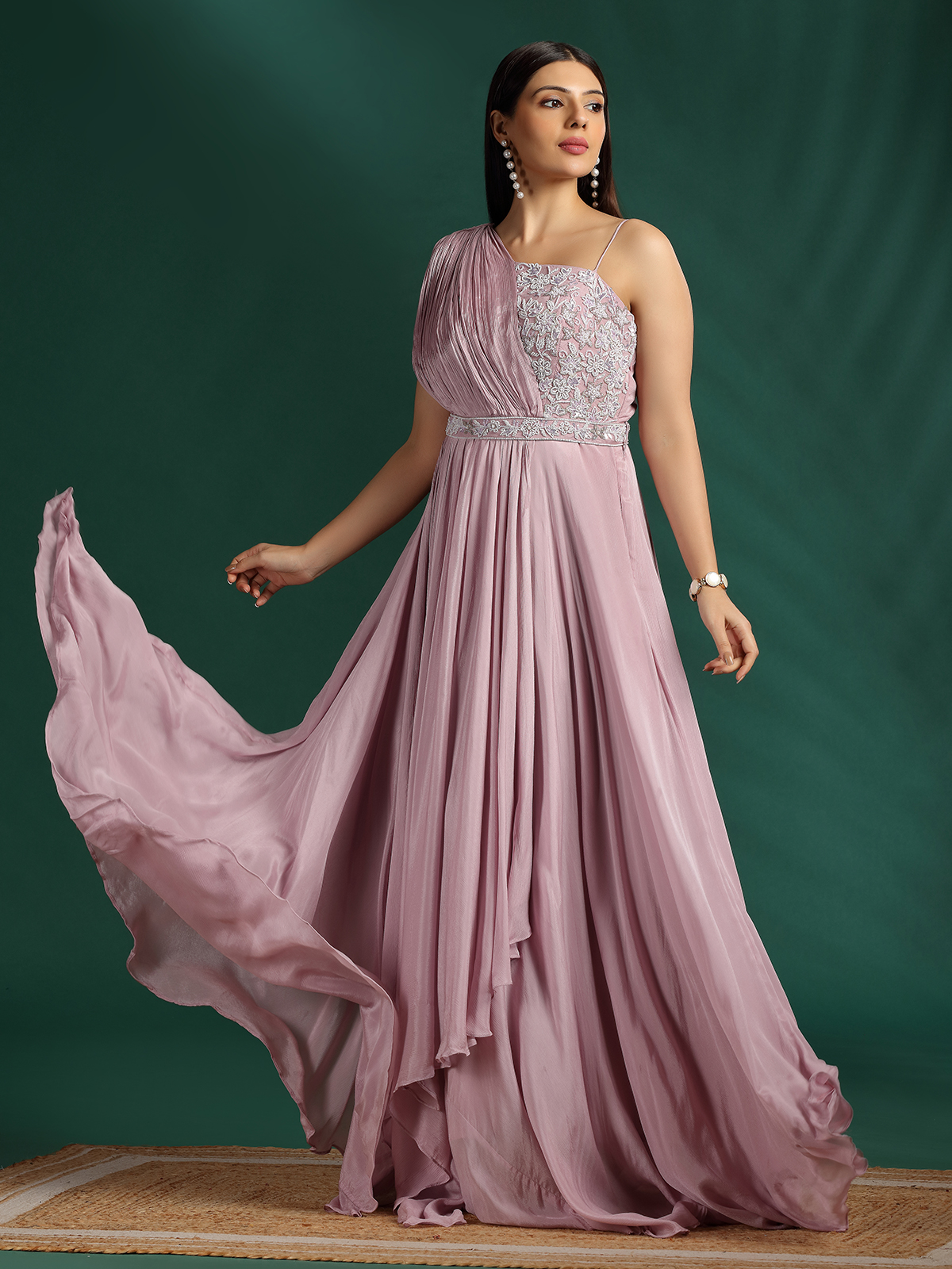 Crafted in flowy georgette, this onion pink suit showcases refined resham threadwork, radiant sequins, cutdana shimmer and beaded embellishments. Paired with timeless design, it offers a perfect mix of elegance and occasion ready charm ideal for wedding events, receptions or festive evenings.