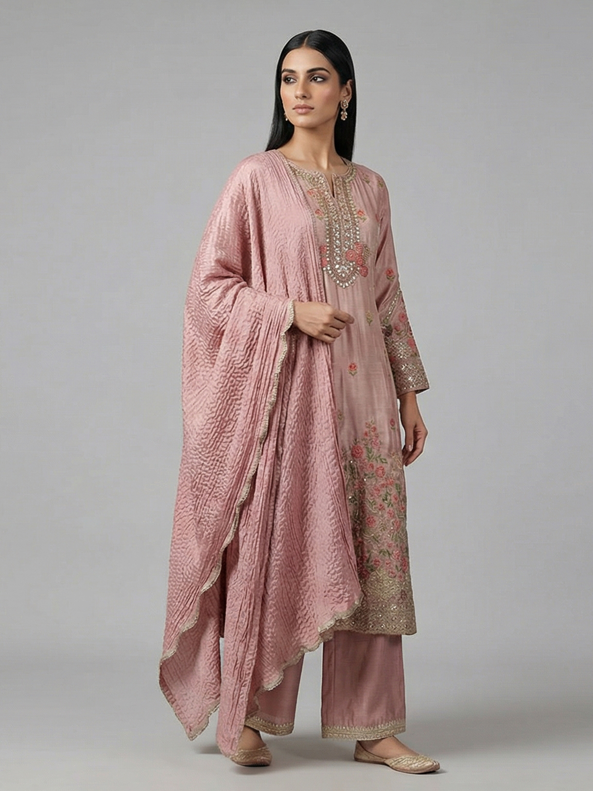 Onion Pink Silk Anarkali Suit Festive Elegance