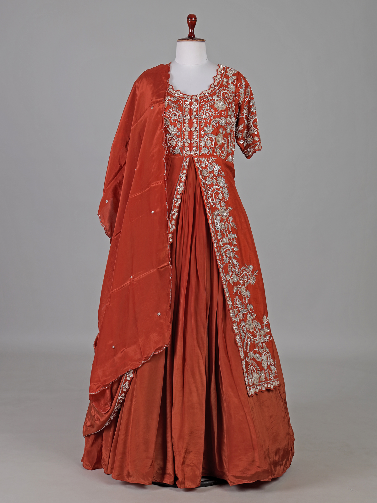 Orange Crepe Silk Embellished Designer Anarkali Suit