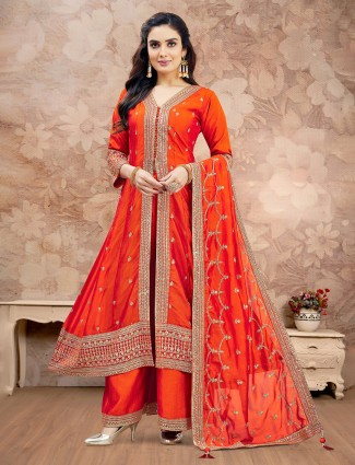 Orange Raw Silk Palazzo Salwar Suit