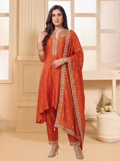 Orange Silk Designer Salwar Suit With Dupatta