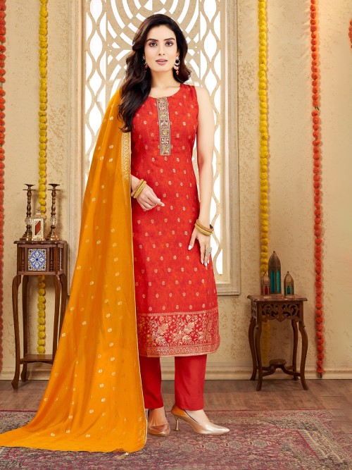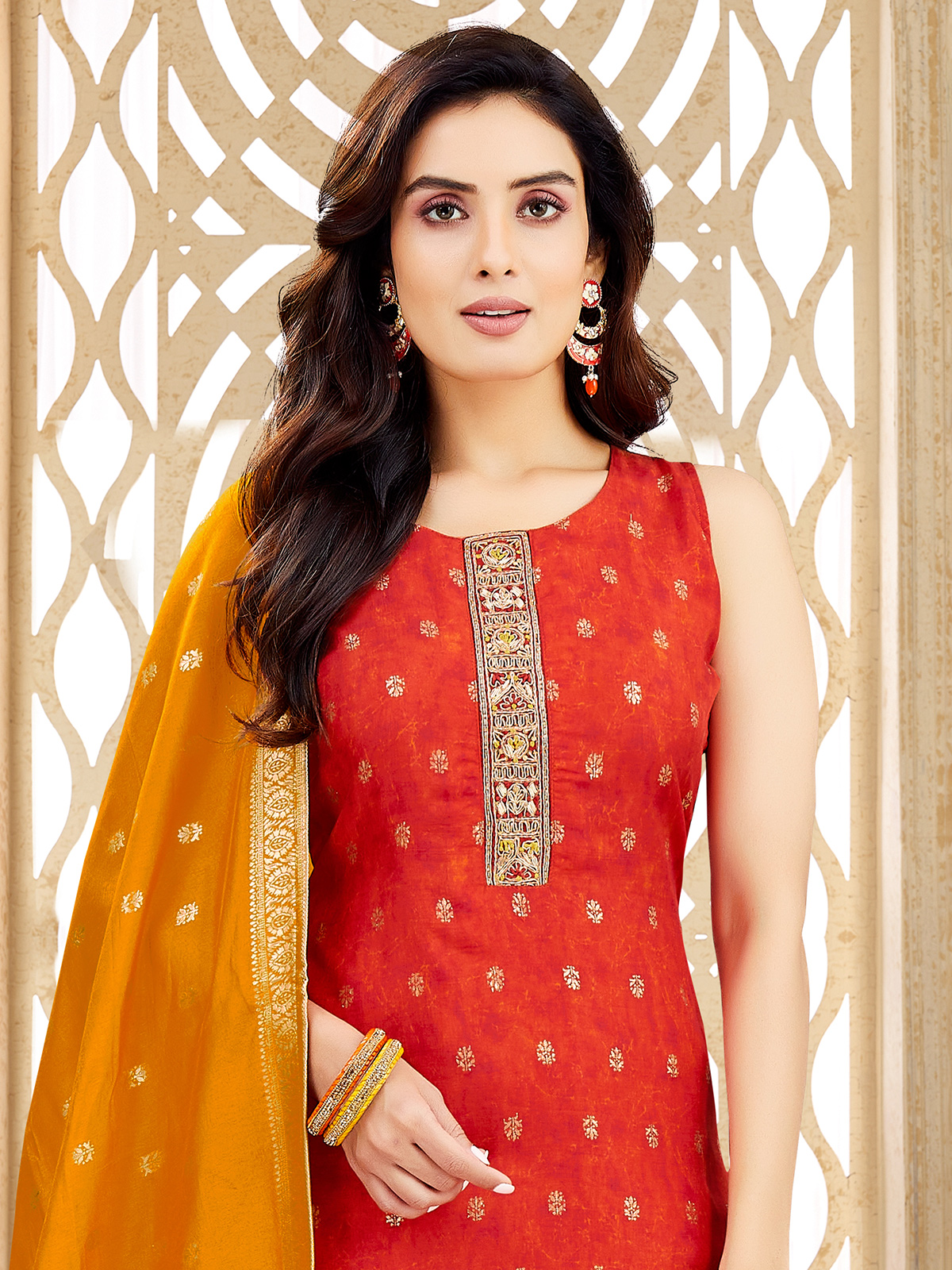 Orange Silk Salwar Suit With Zardosi Thread Work