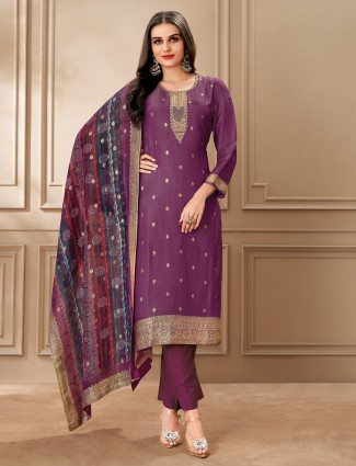 Organza Purple Salwar Suit With Zari Work