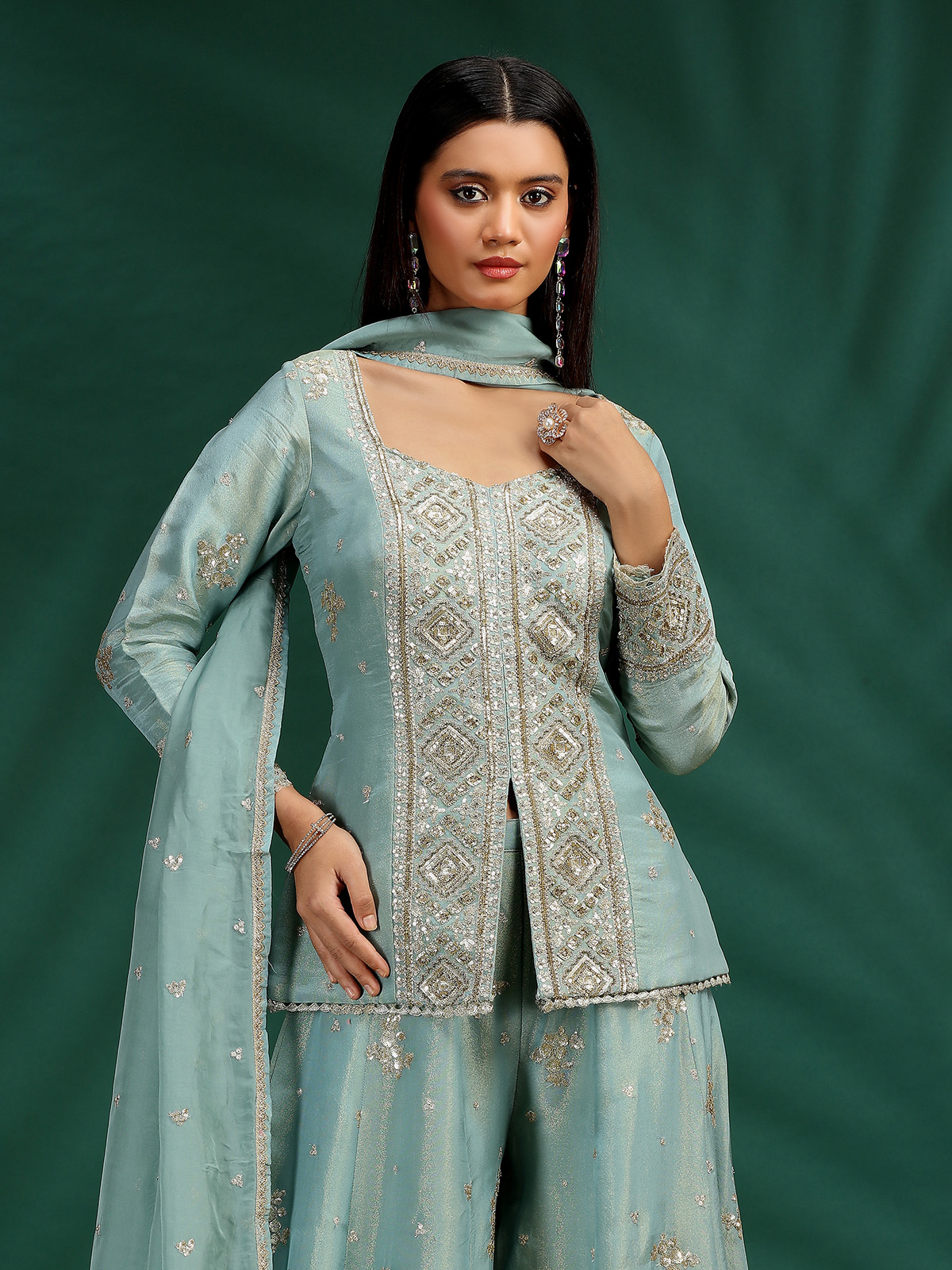 Pastel Sky Blue Silk Palazzo Suit For Wedding