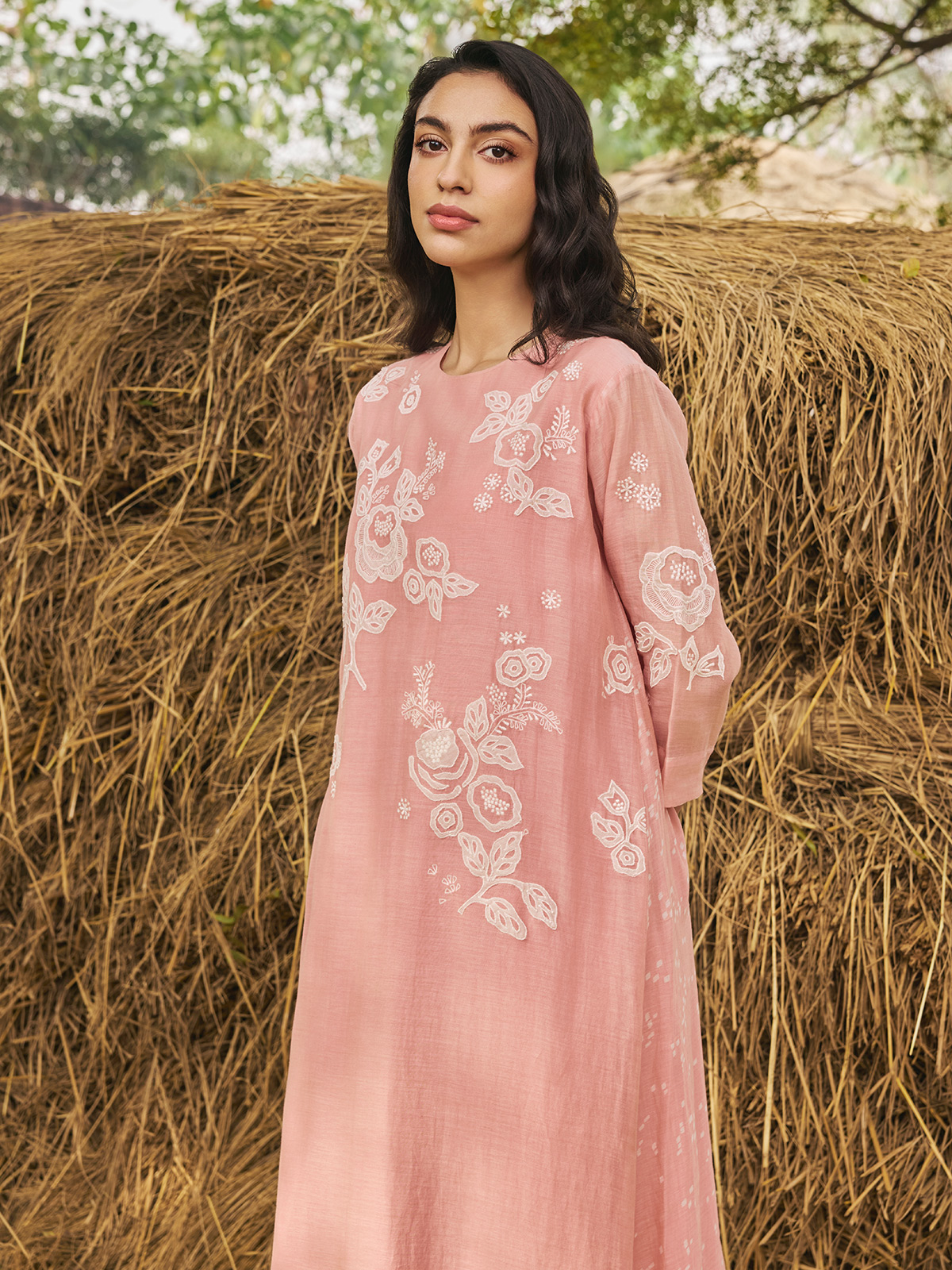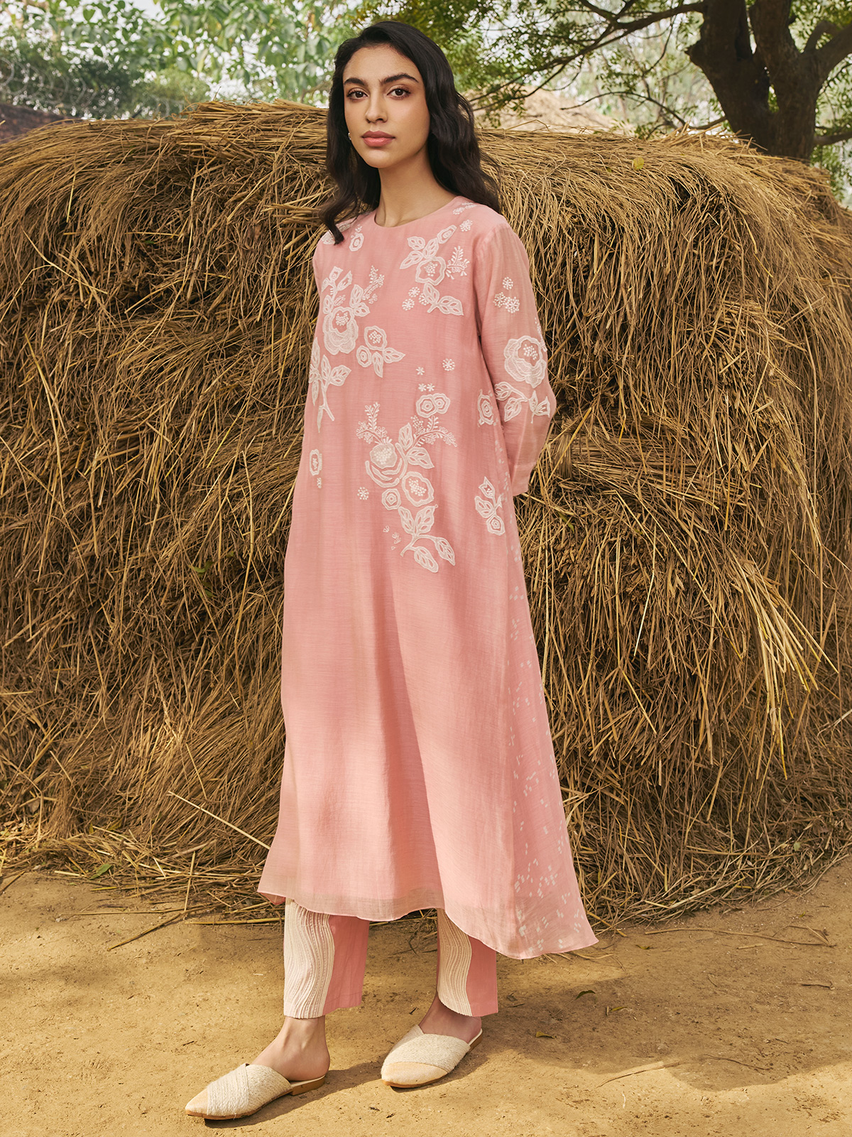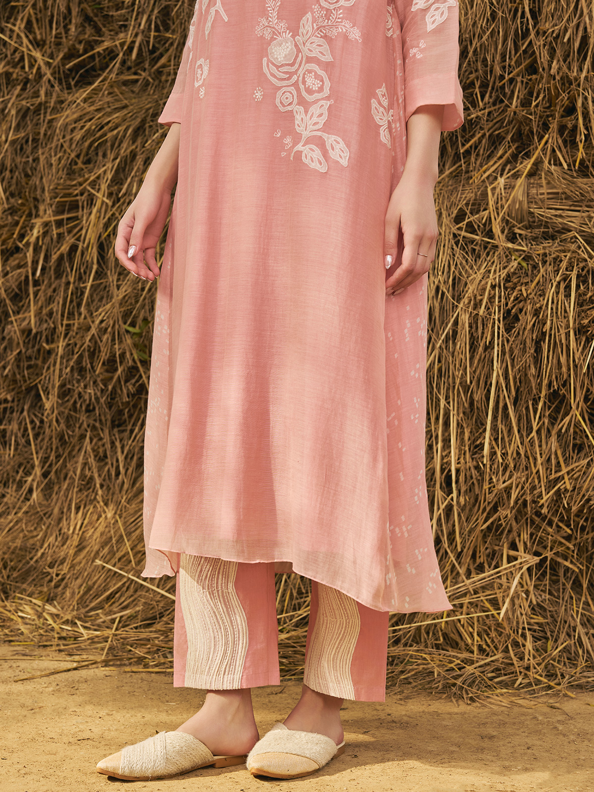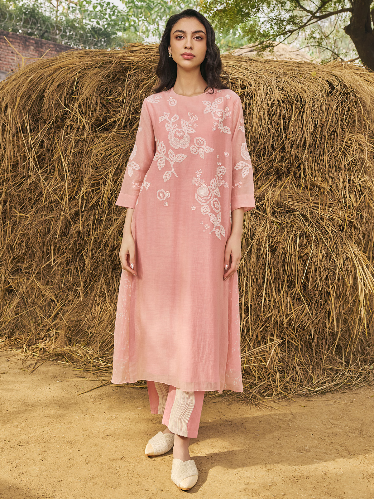 Radiate elegance in our gorgeous peach muslin cotton salwar suit. Embellished with delicate embroidery and patchwork, it's the perfect pick for graceful gatherings.