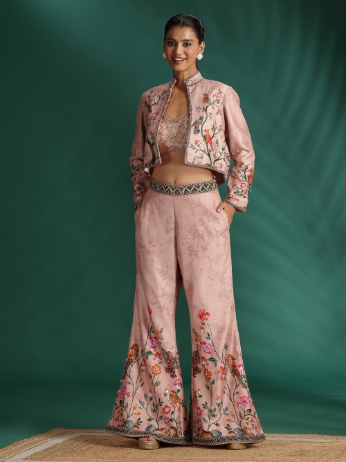 Peach Silk Printed Jacket Palazzo Set