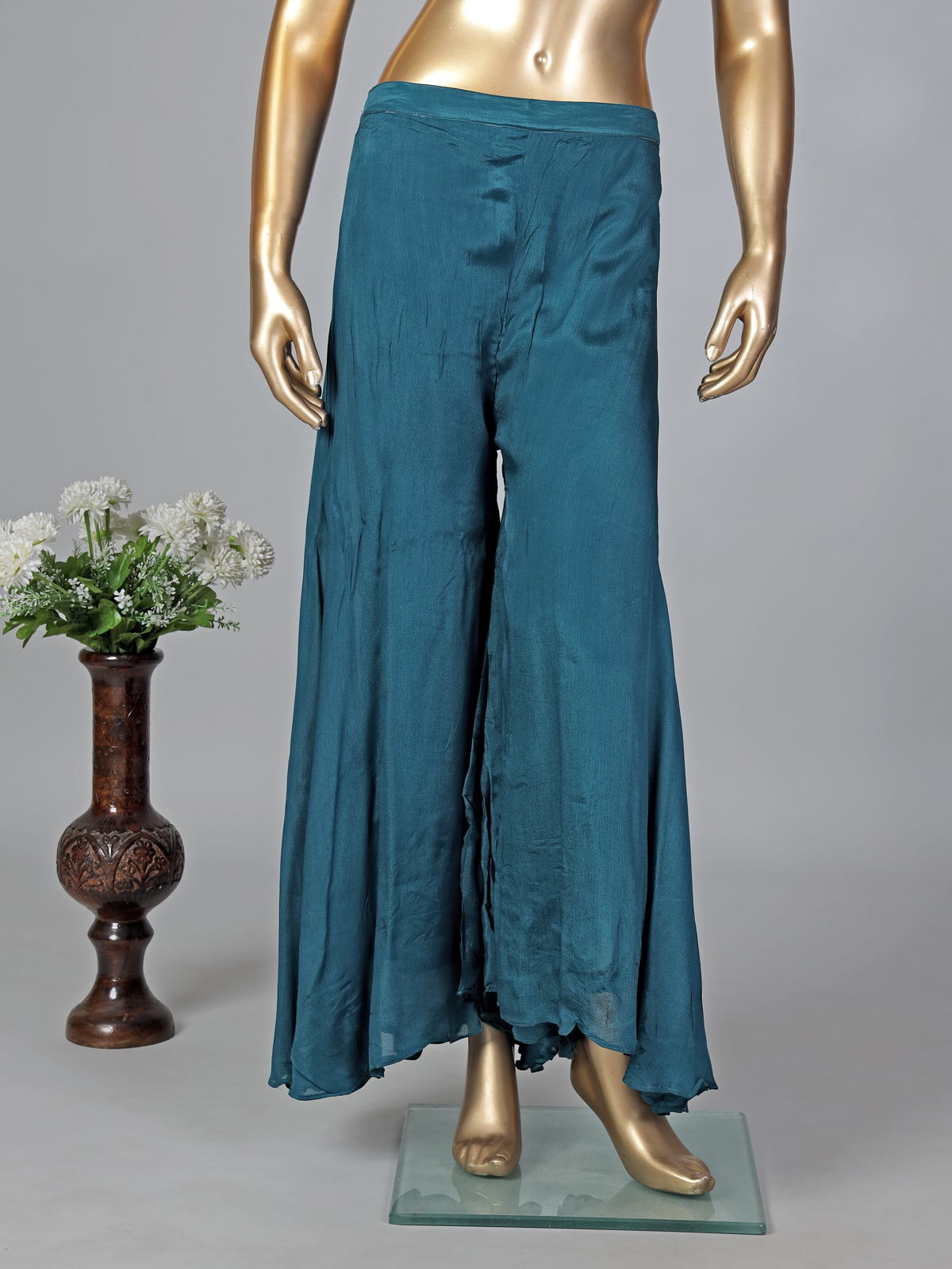 Peacock Green Silk Festive Palazzo Suit With Zardosi Work