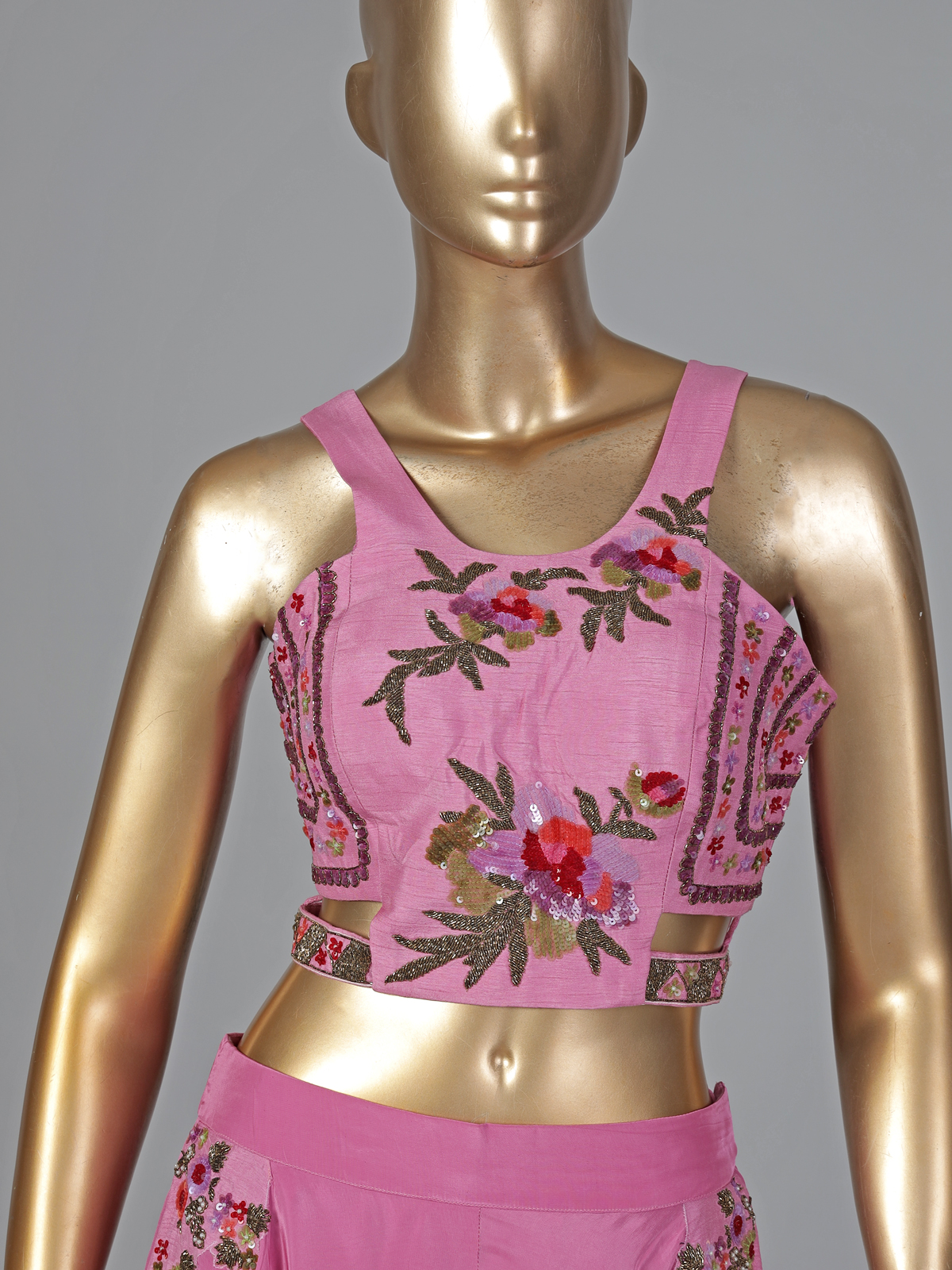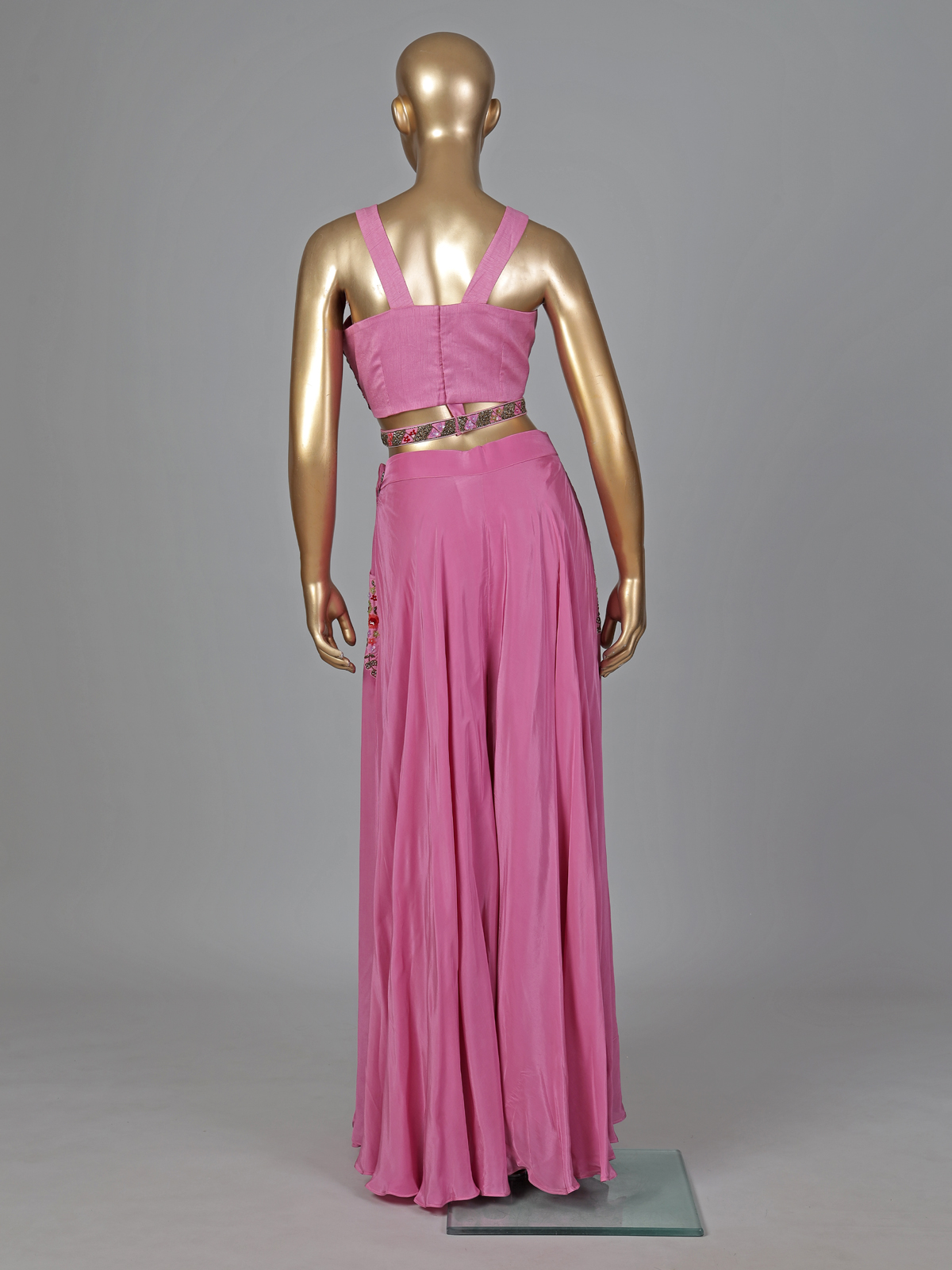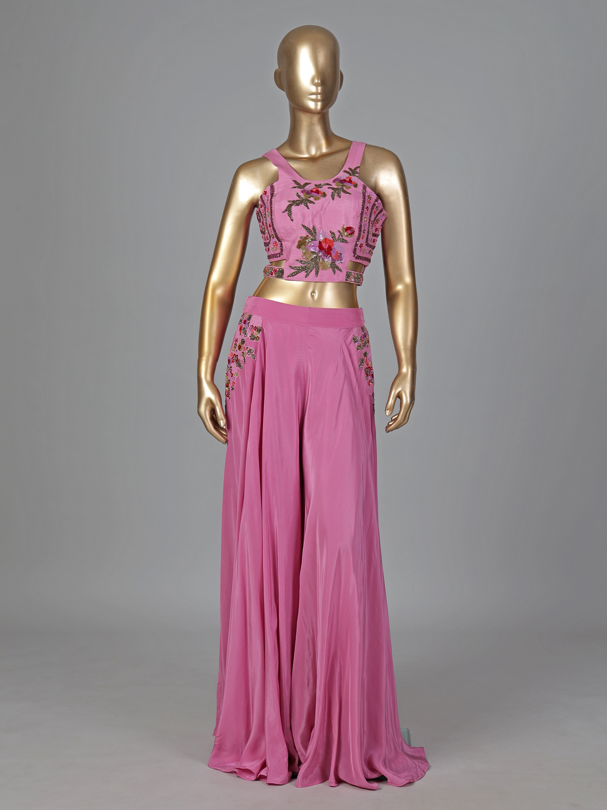 Pink Satin Silk Cutdana Embellished Palazzo Suit