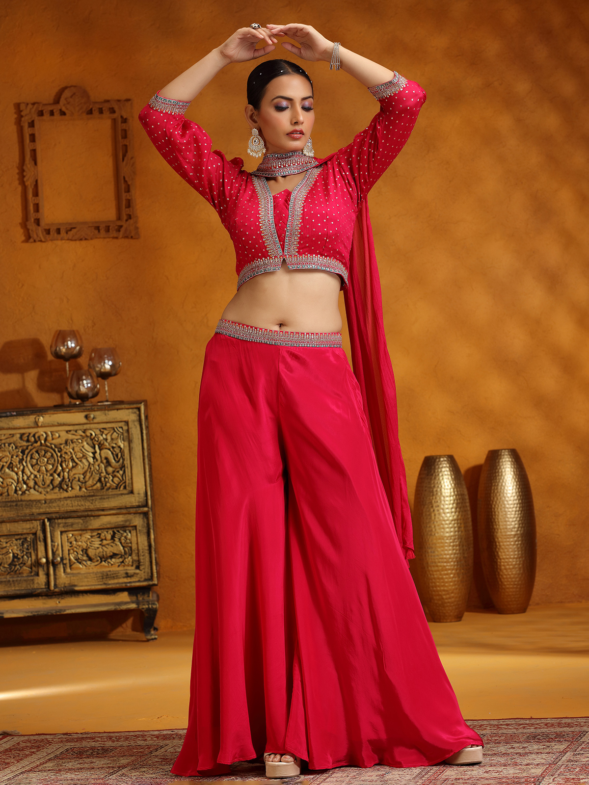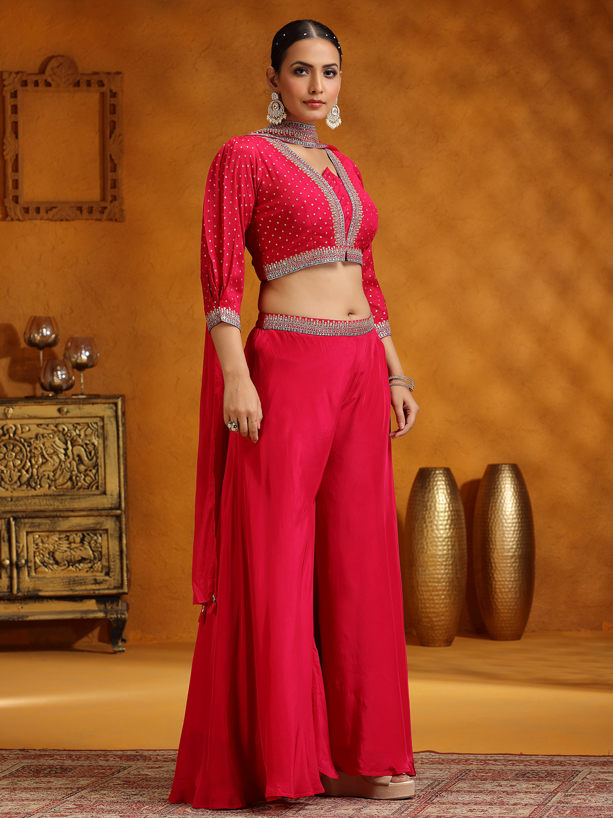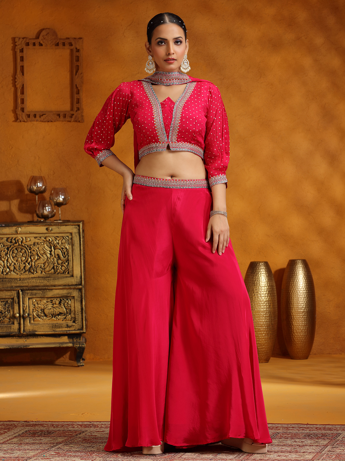 Pink Satin Silk Palazzo Suit For Wedding Wear