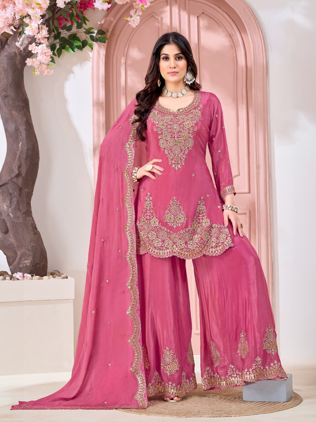 Pink Silk Pakistani Style Palazzo Festive Wear Suit