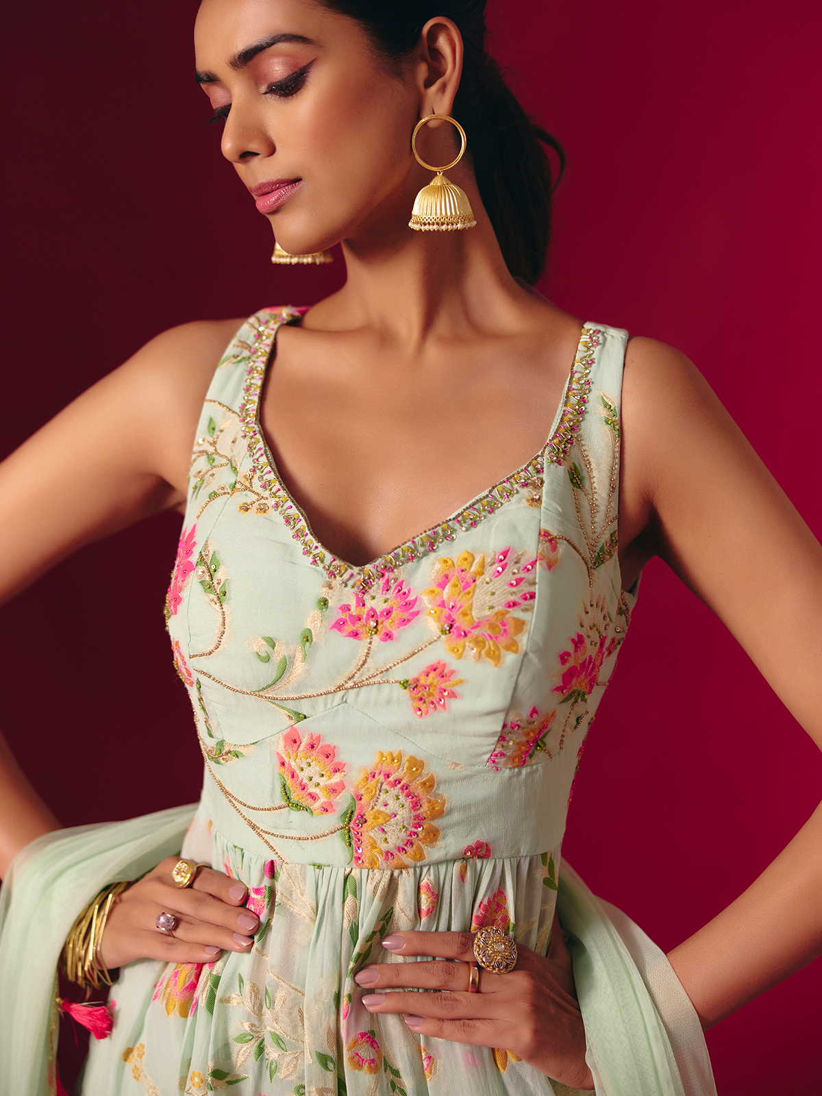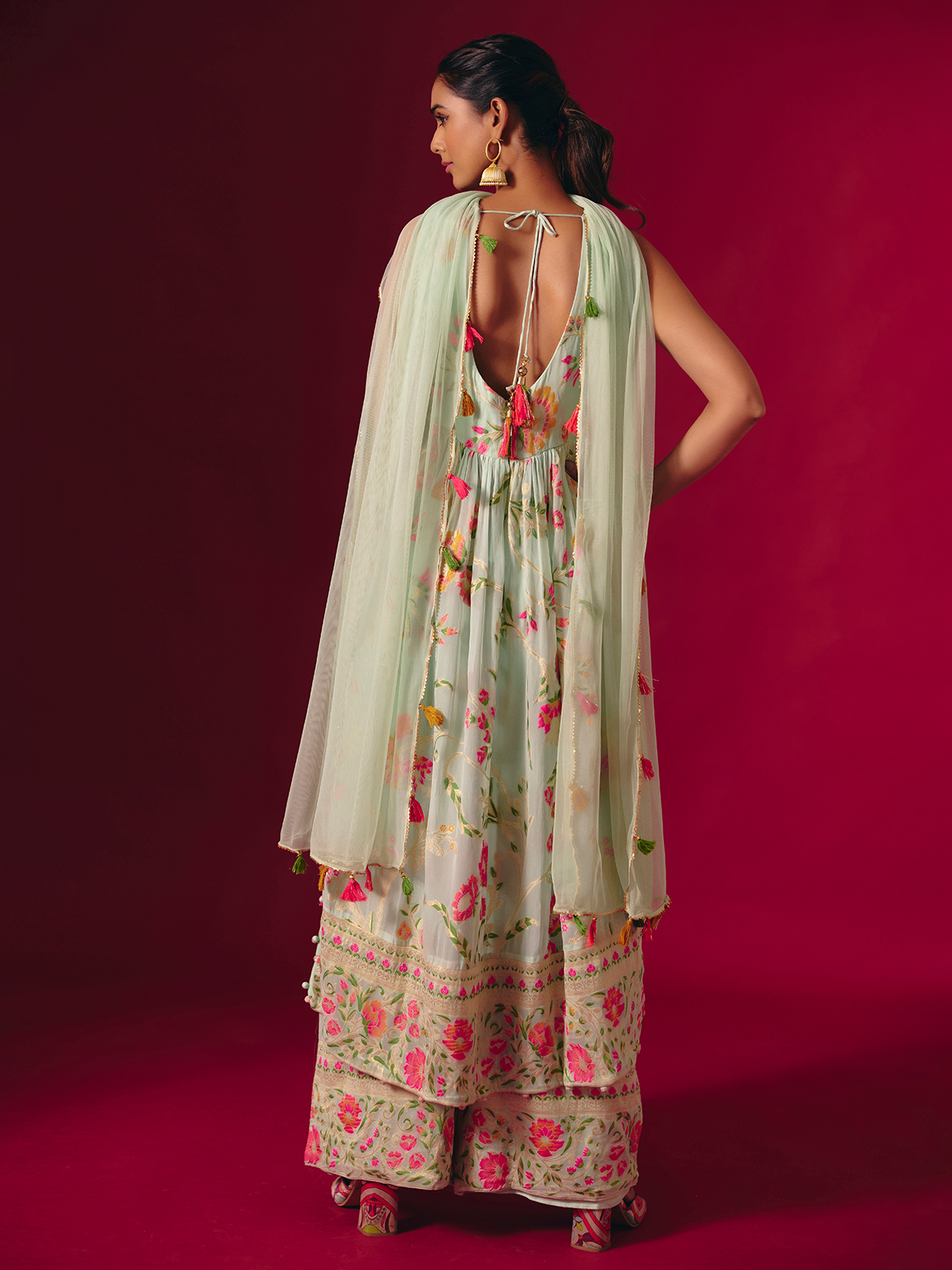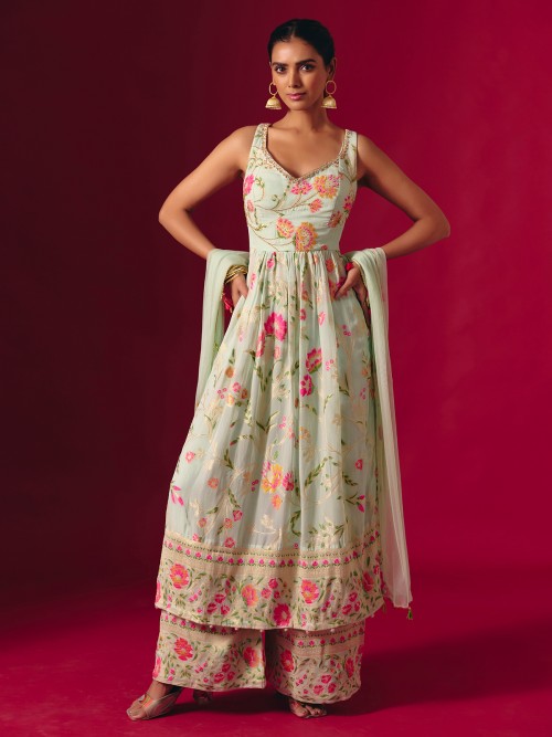 Pista Green Georgette Embellished Pakistani Palazzo Suit