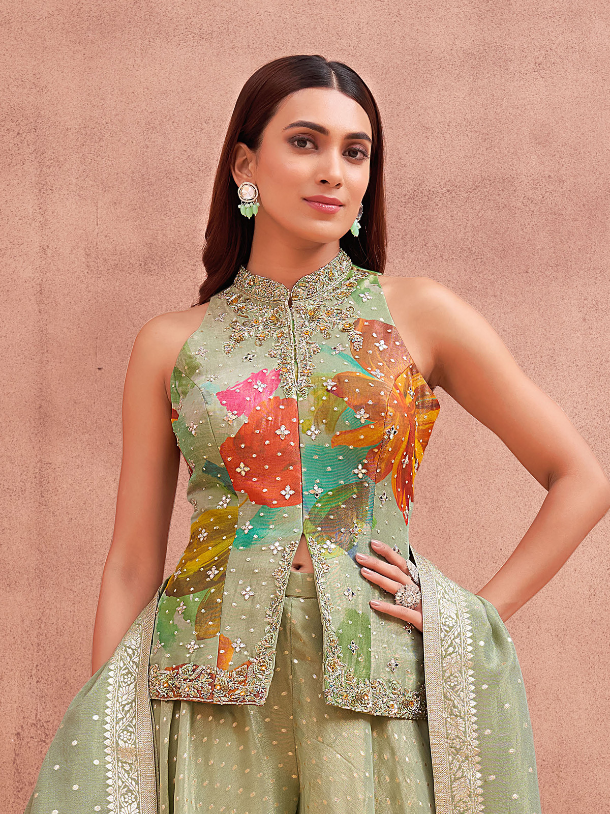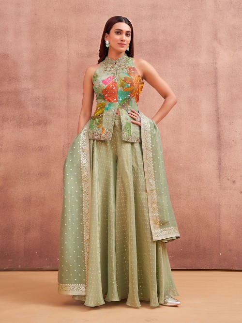 Pista Green Silk Palazzo Salwar Suit For Wedding