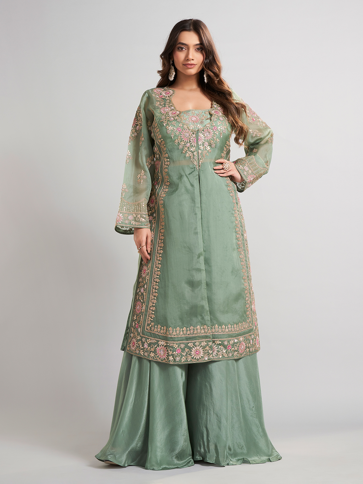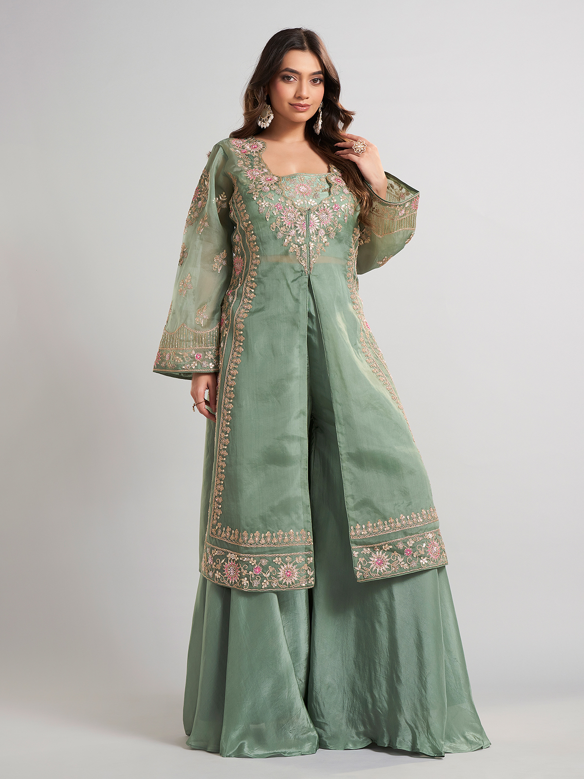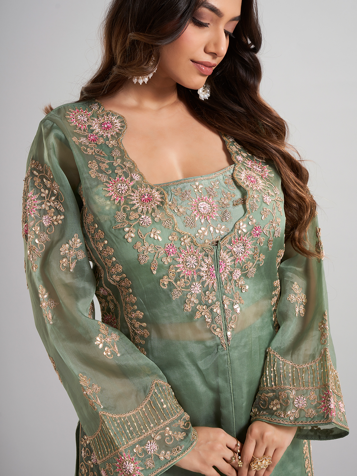 Pista Green Tissue Silk Pakistani Palazzo Suit