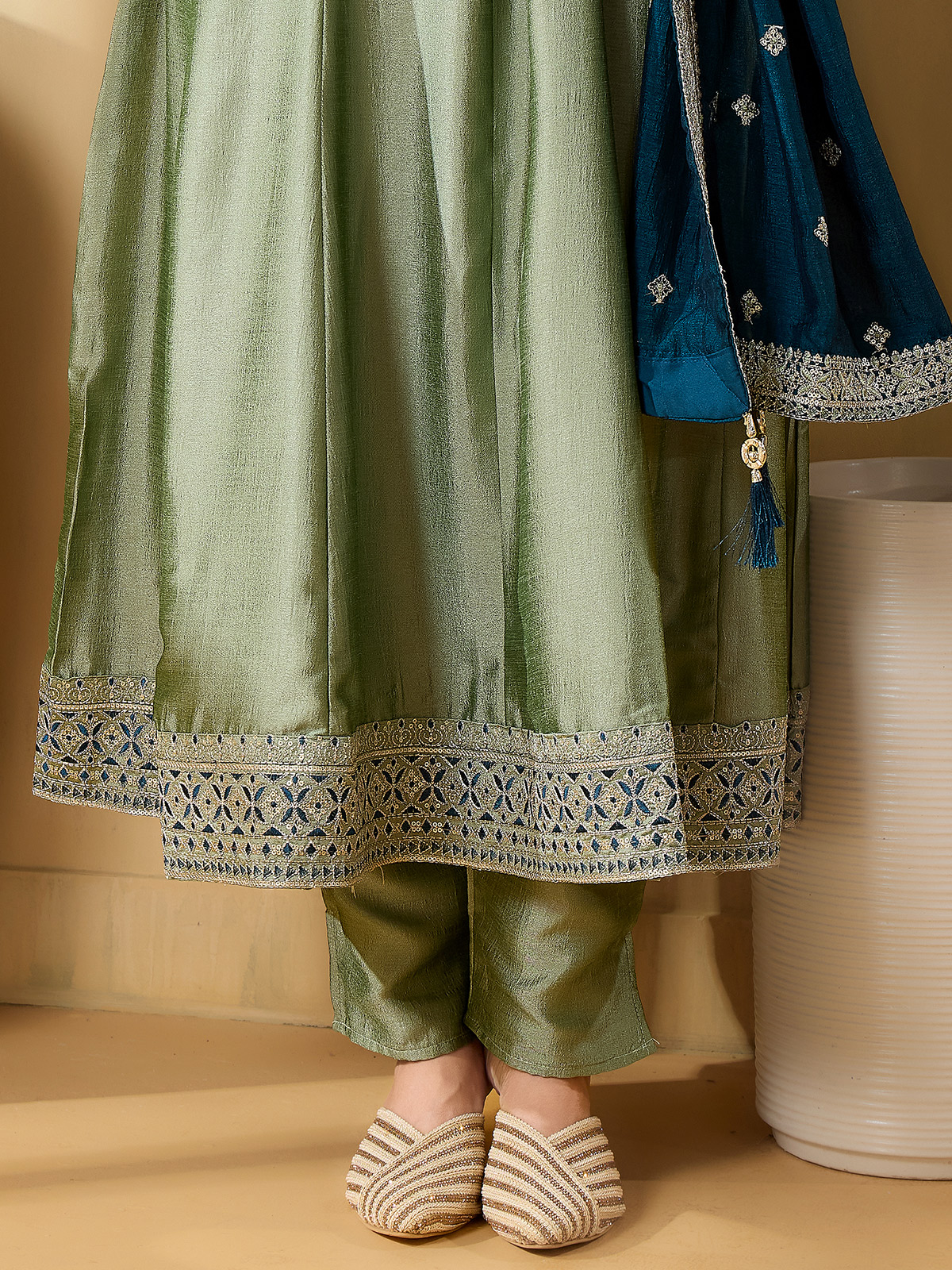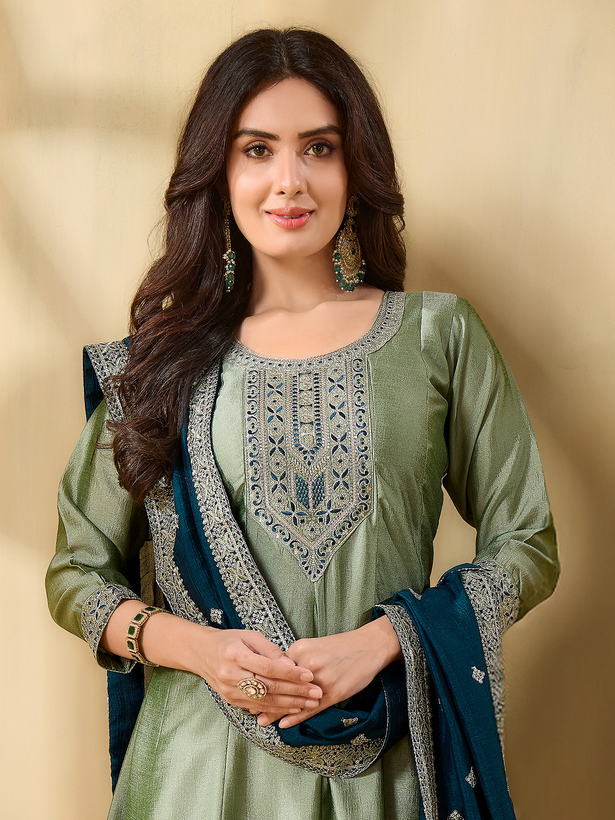 Pista Green Yoke Style Silk Salwar Suit