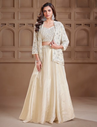 Pretty White Silk Palazzo Suit With Sequins Work For Women