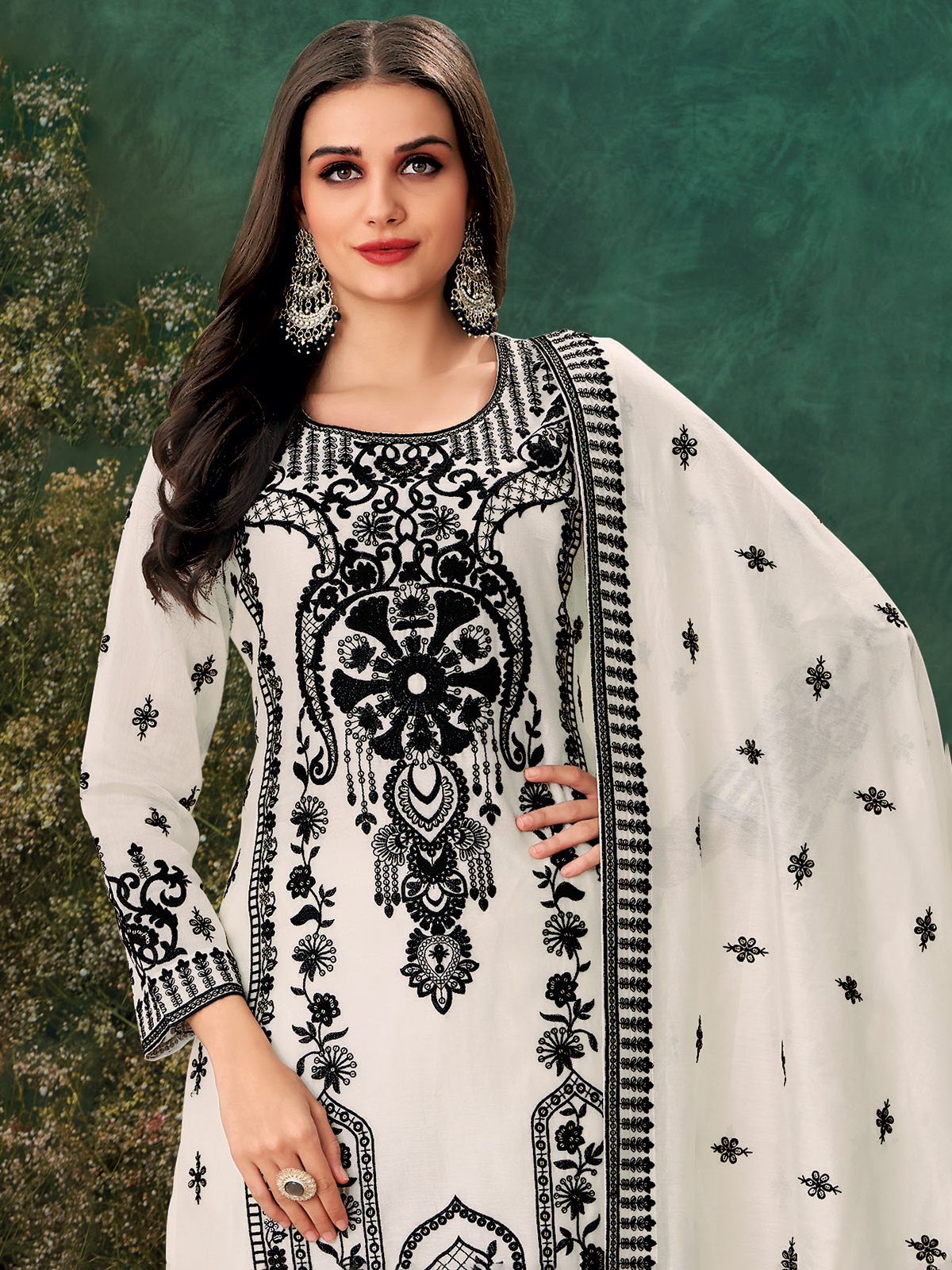 Pure White Chanderi Suit Featuring Elegant Thread Embroidery