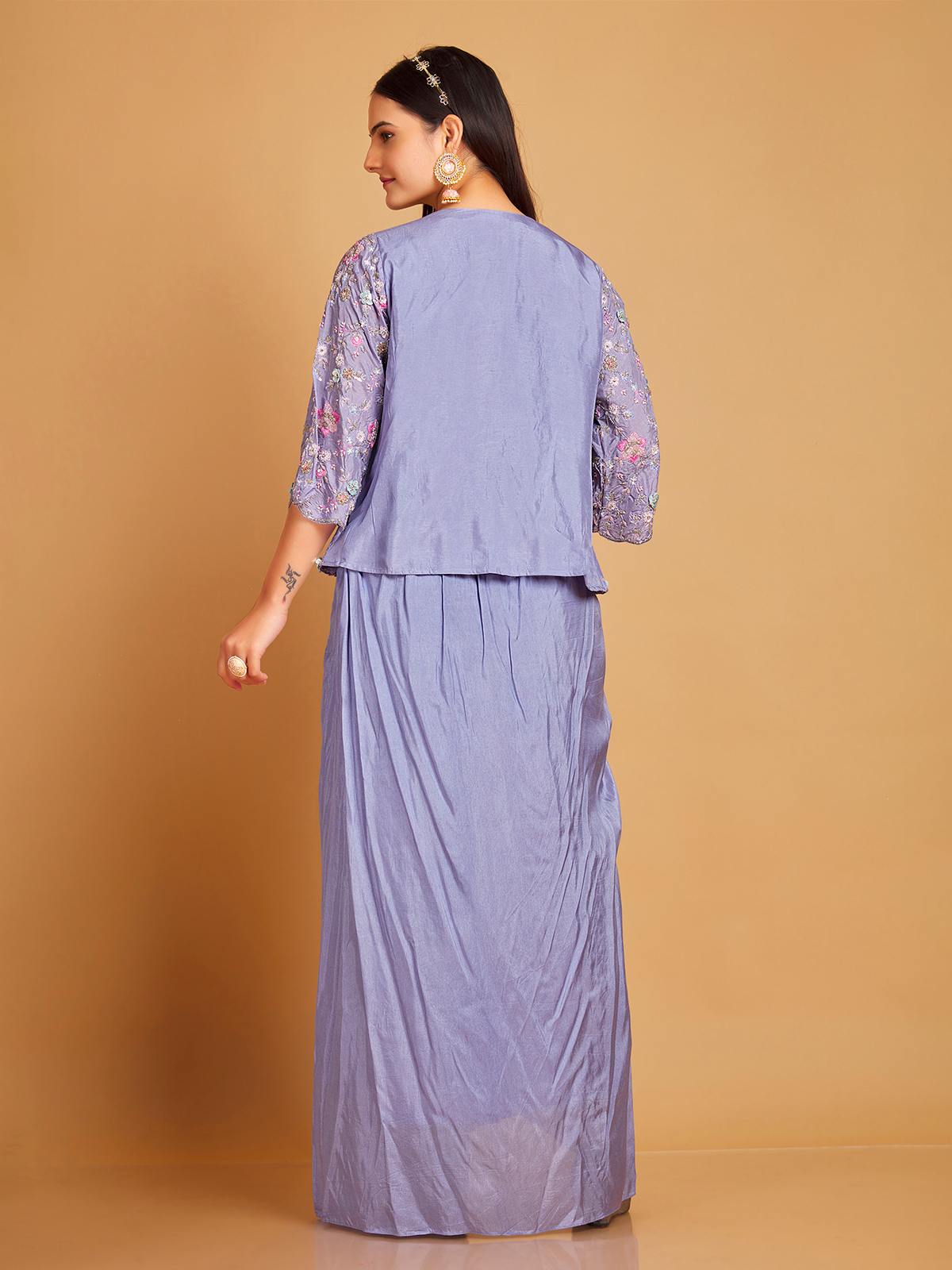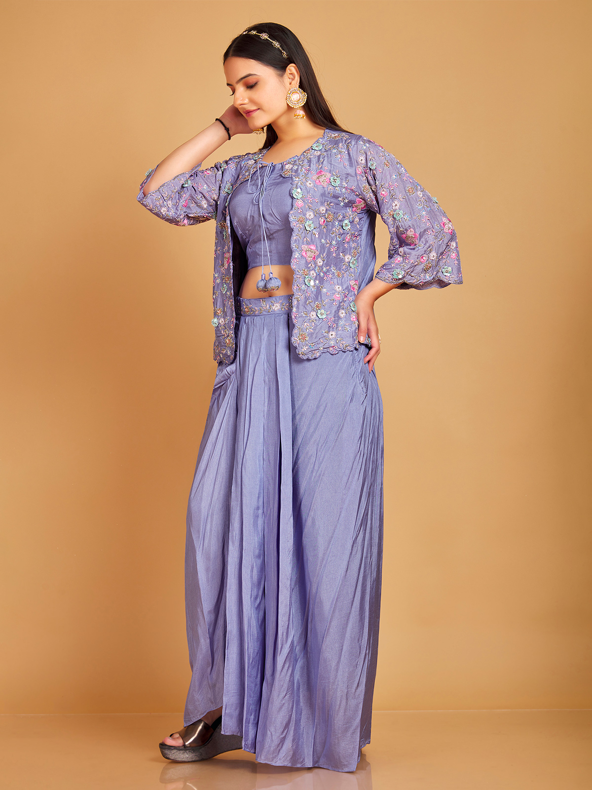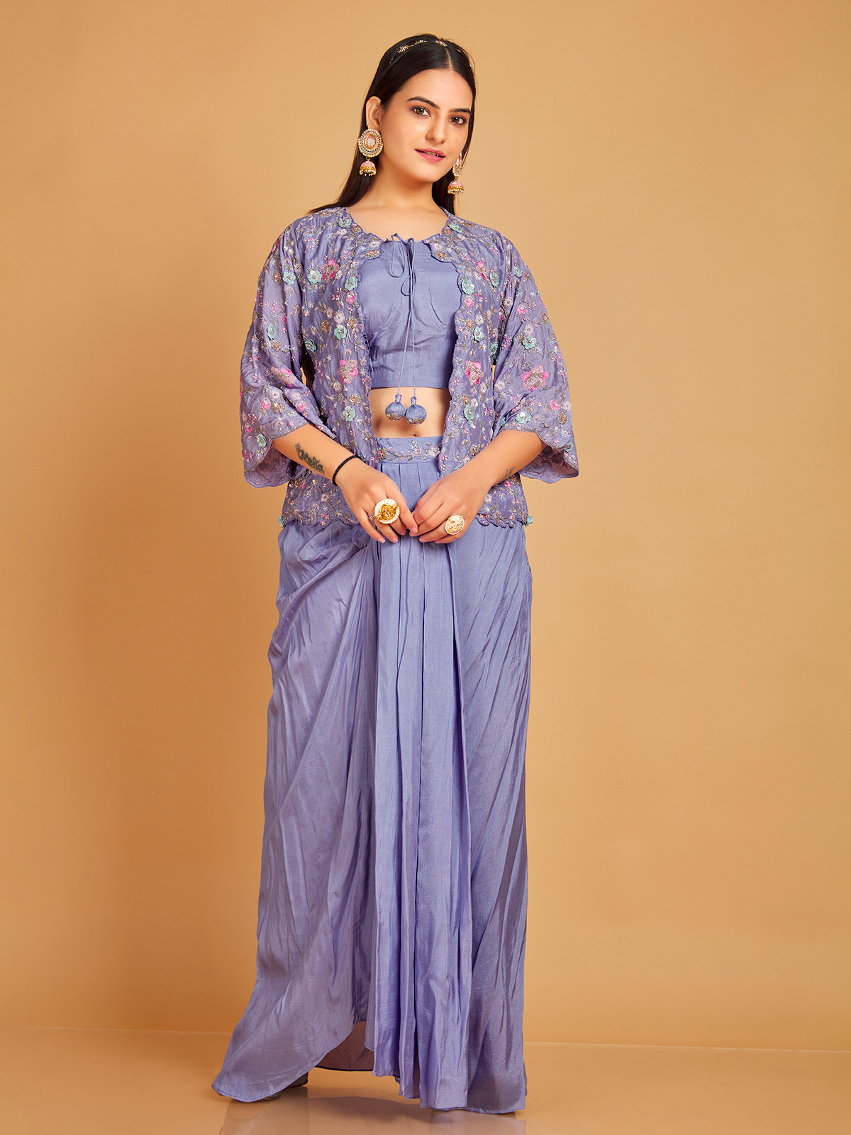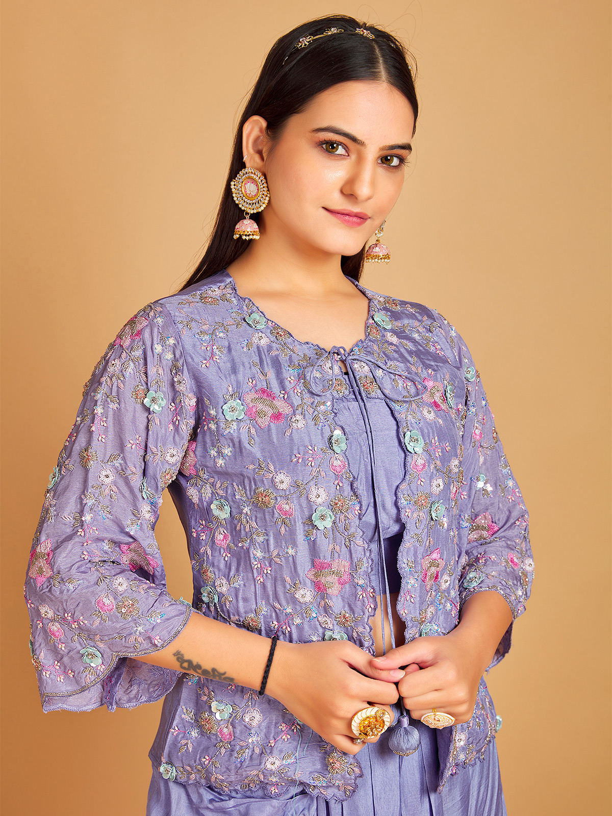 Unveil your true elegance with this purple silk designer lehenga suit, featuring intricate sequins, cutdana and resham work that sets it apart.