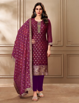 Purple Zari Worked Salwar Suit In Soft Organza