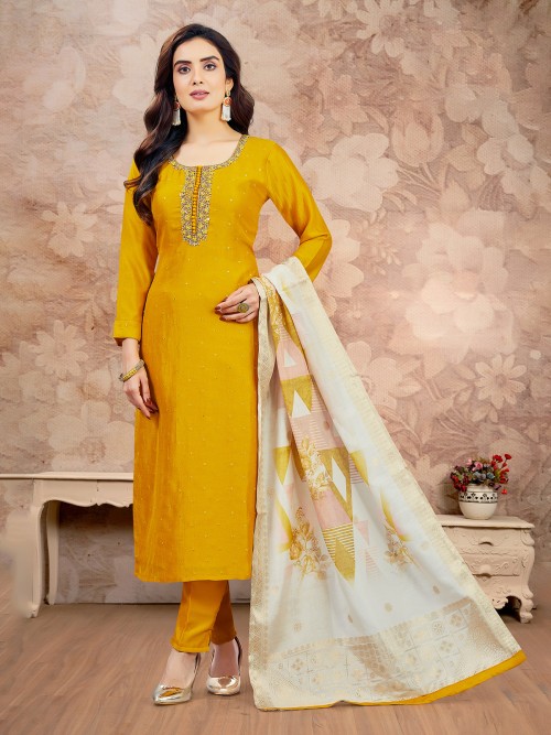 Radiant Yellow Silk Salwar Suit With Sequins Embellishment