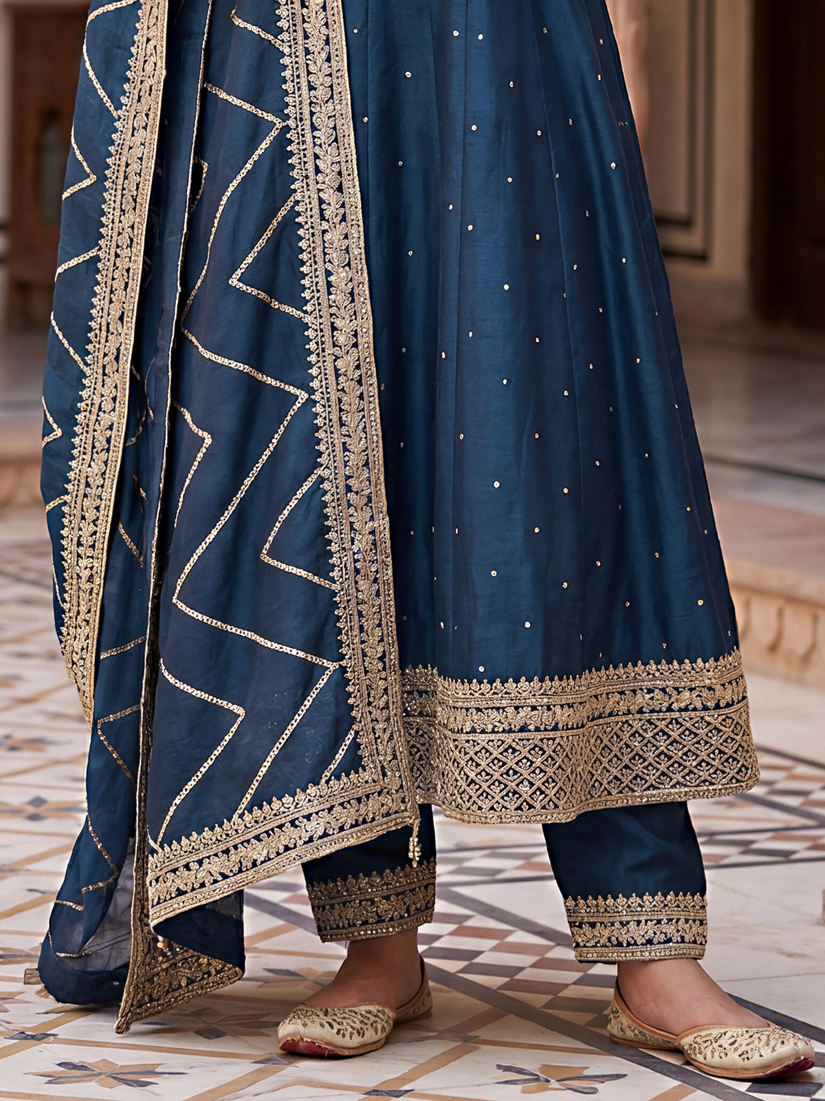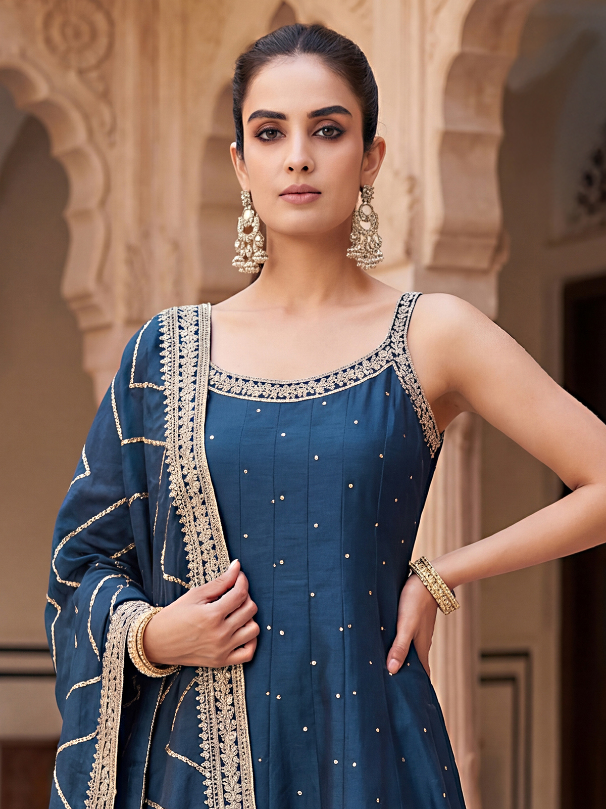 Rama Blue Embellished Silk Salwar Suit With Dupatta