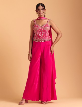 Rani Pink Satin Silk Palazzo Suit For Reception