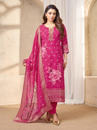 Rani Pink Silk Bandhej Printed Festive Salwar Suit