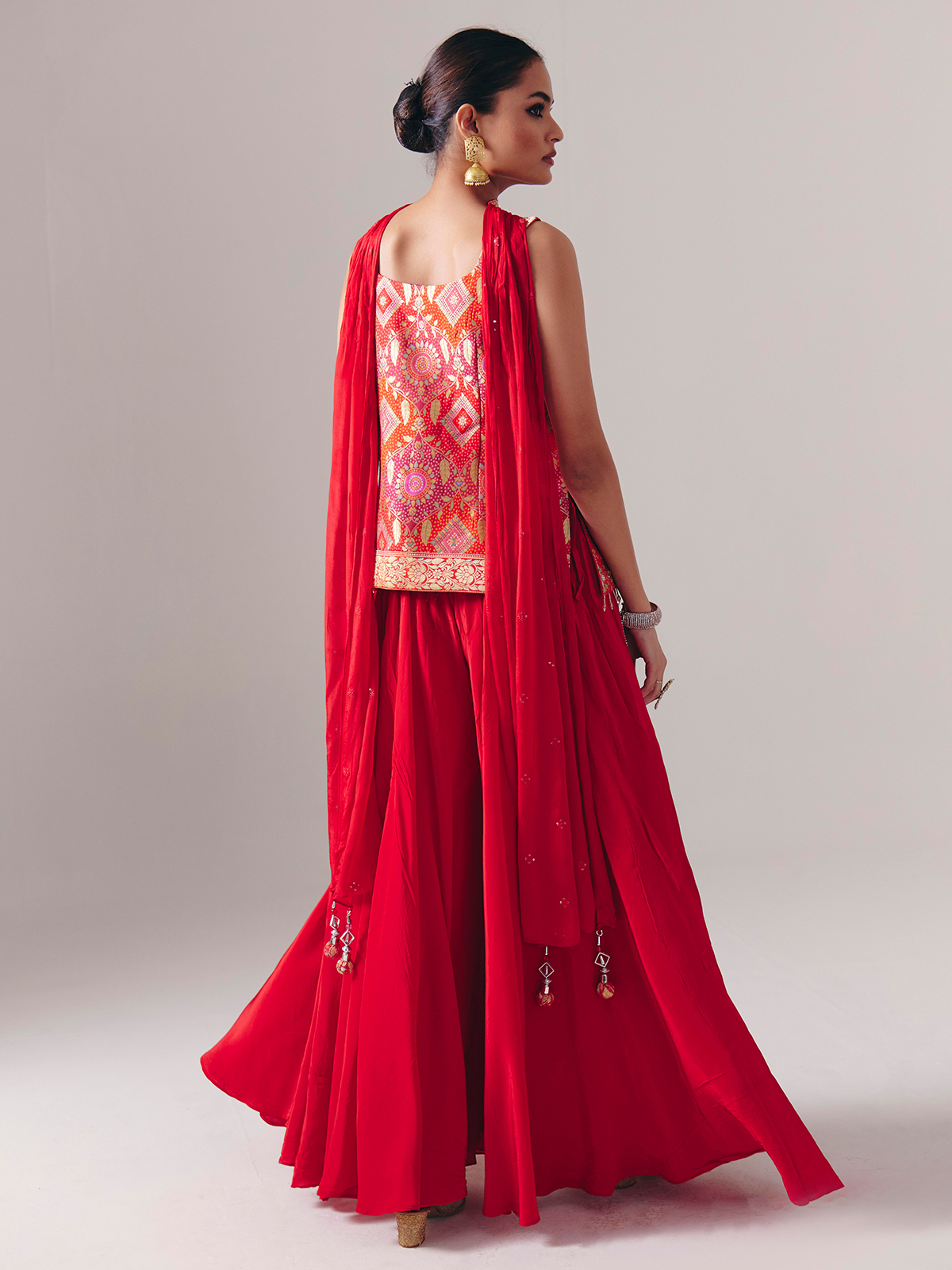Red Satin Silk Palazzo Suit With Dupatta