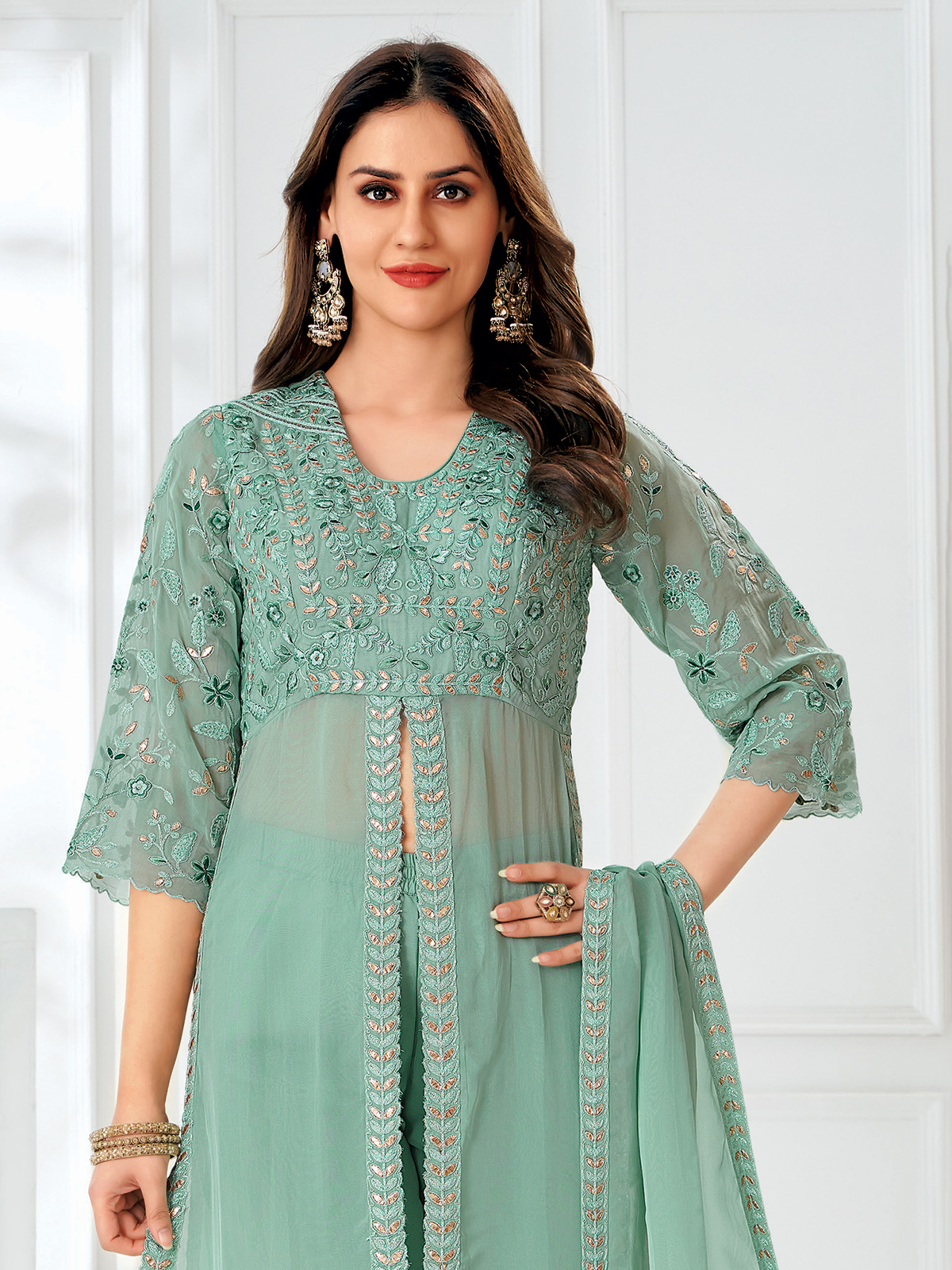 Refreshing Mint Green Organza Palazzo Ensemble For Special Occasions