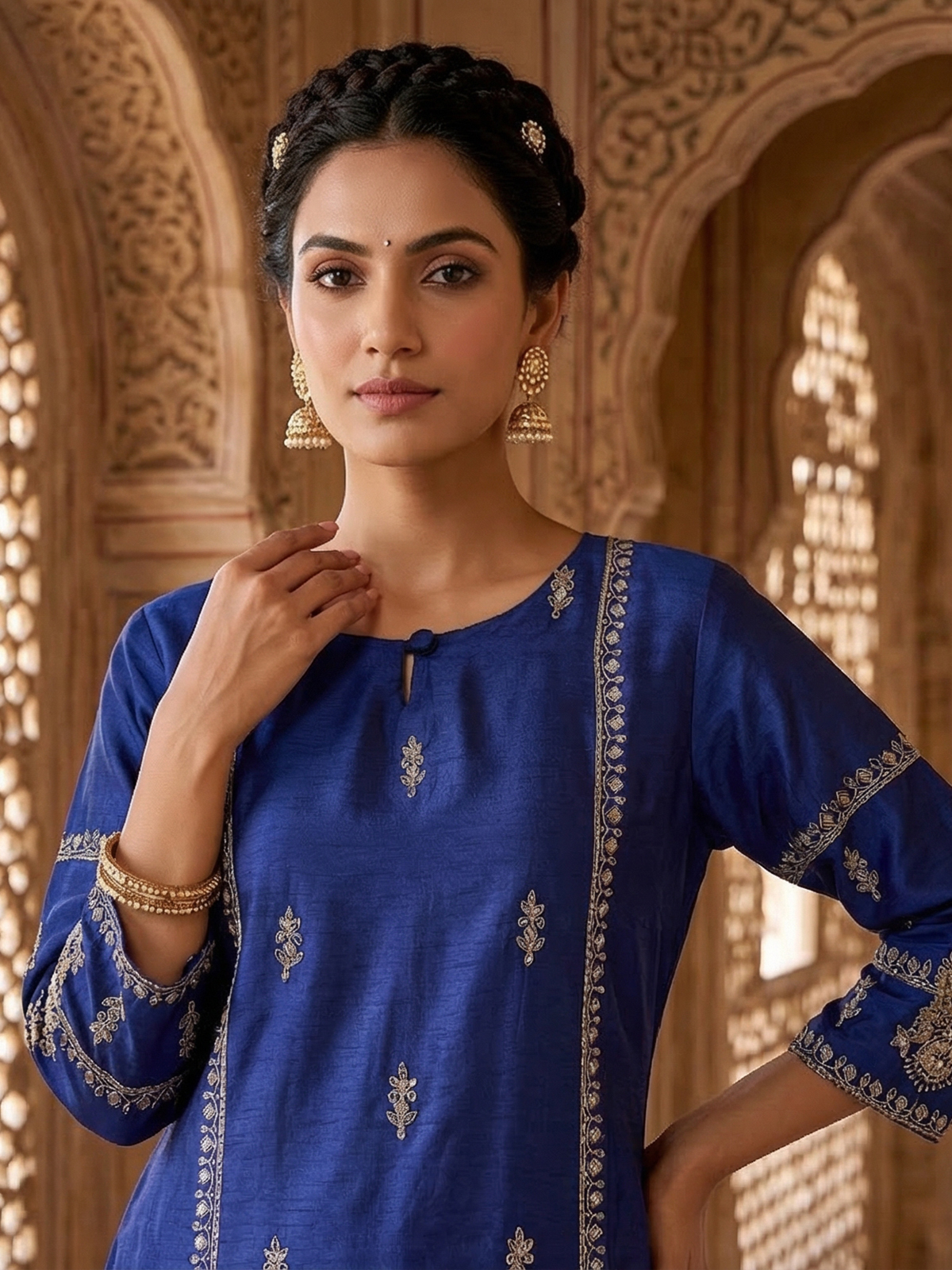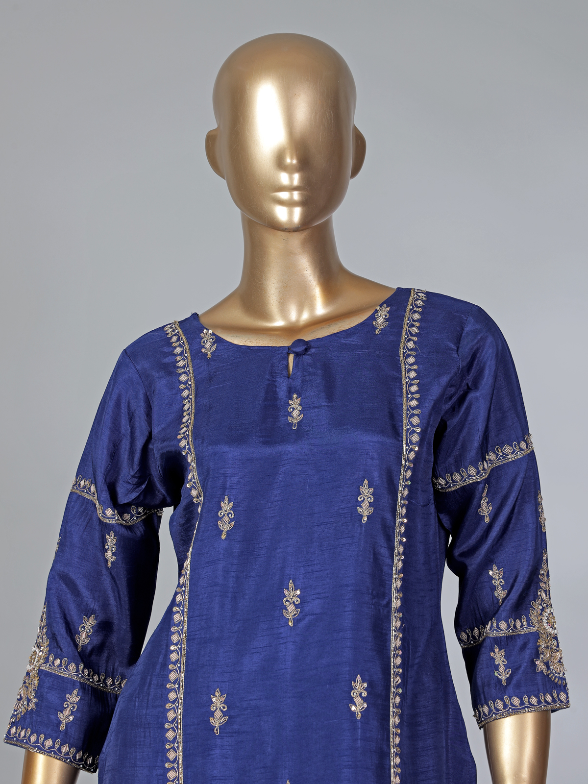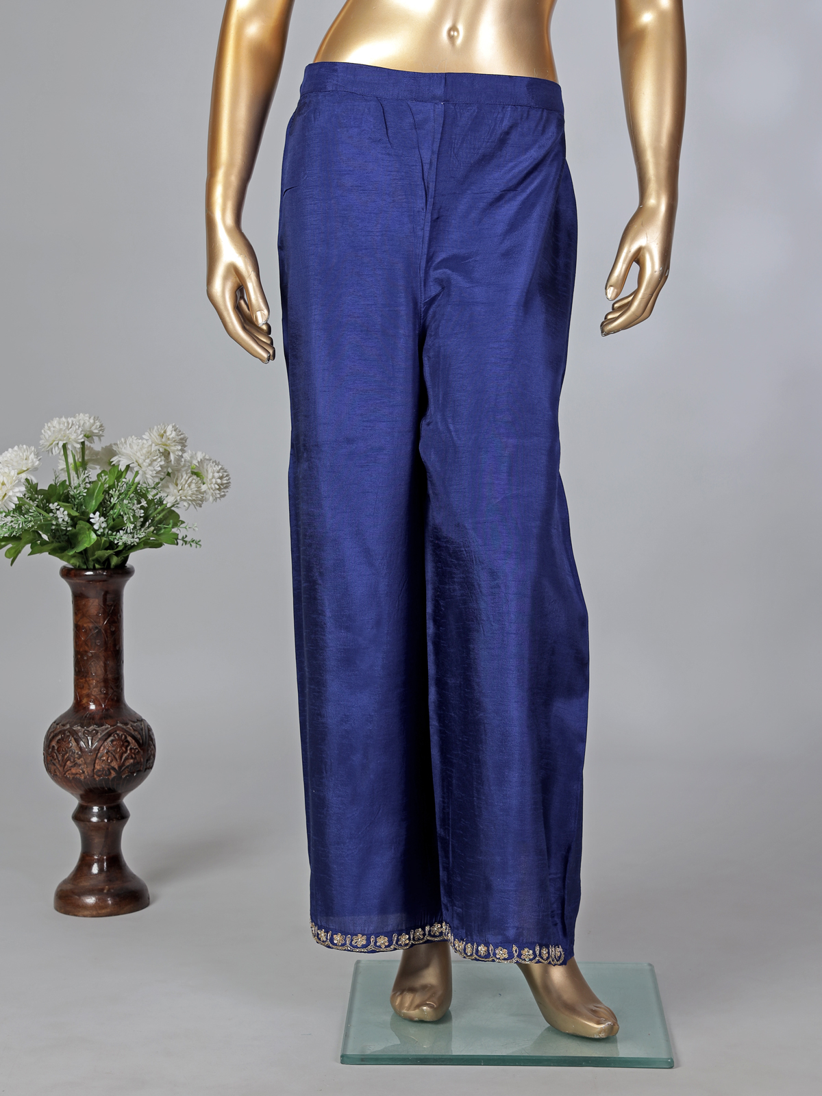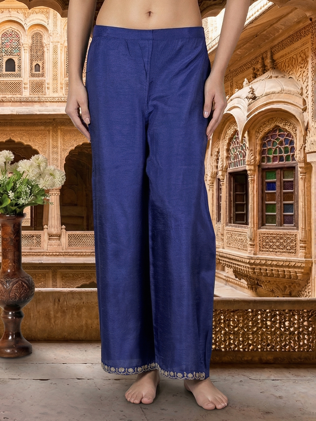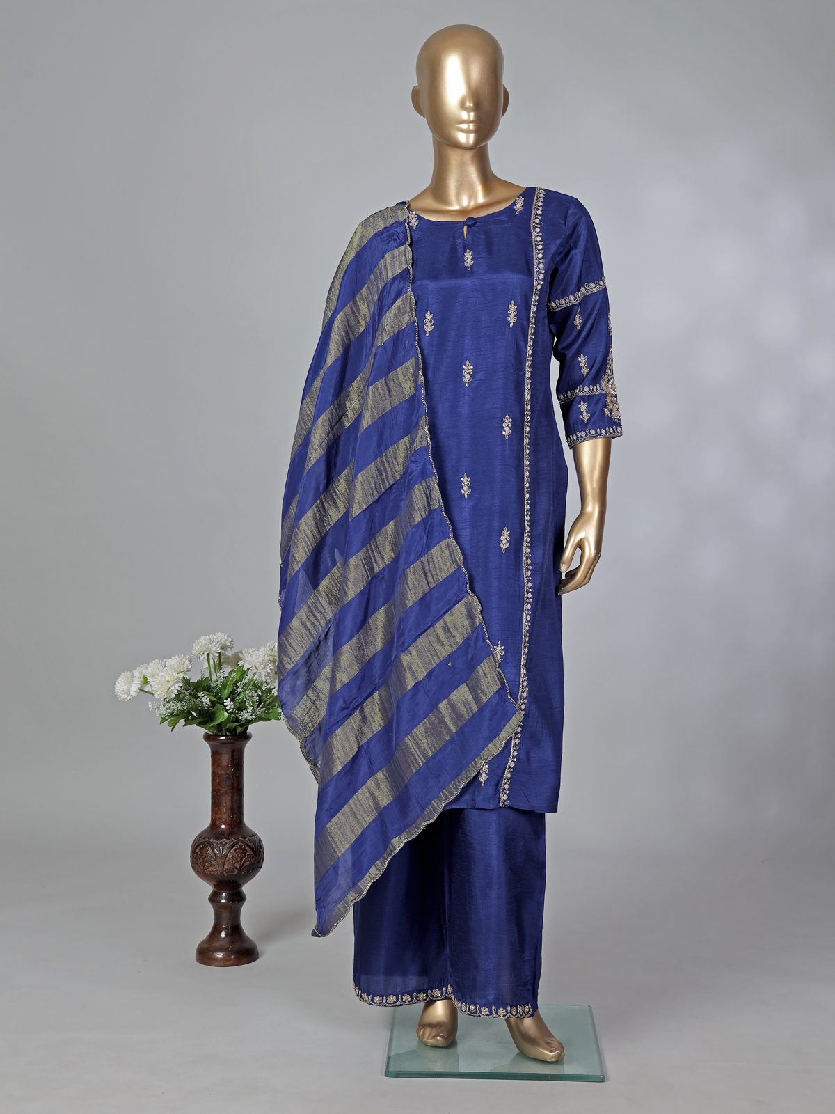 Royal Blue Silk Pakistani Style Palazzo Suit With Embellishments