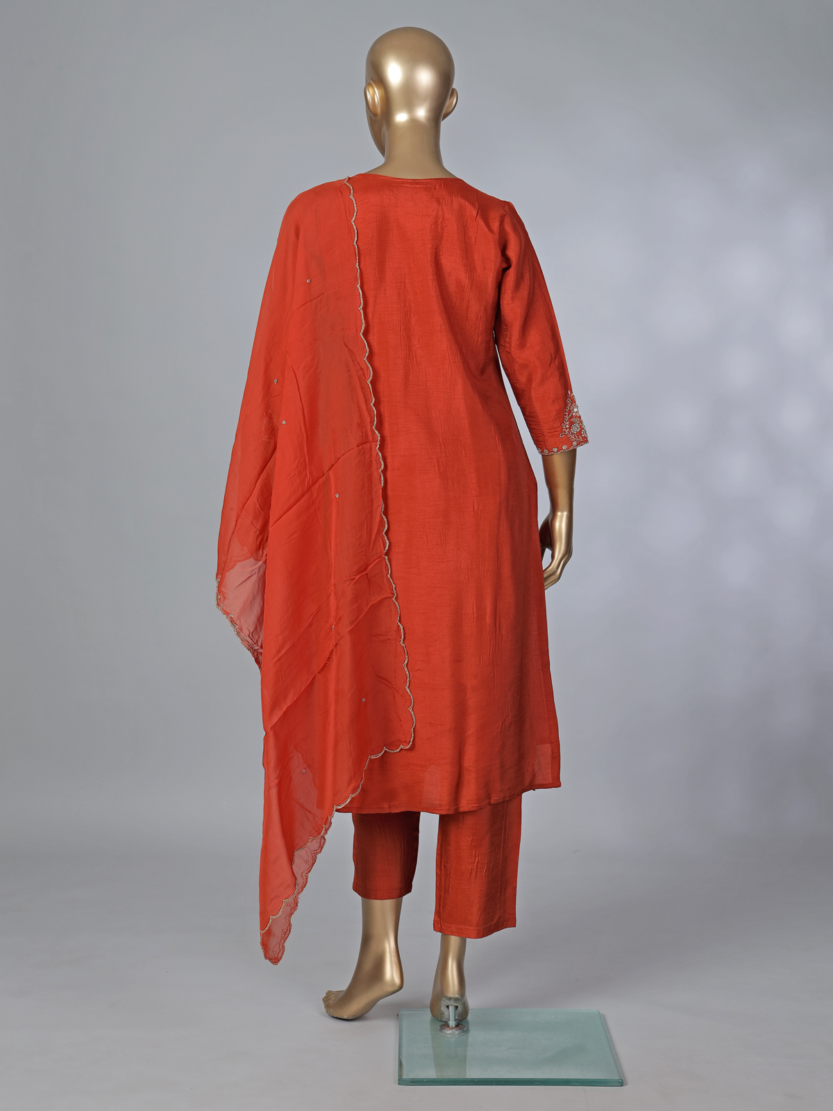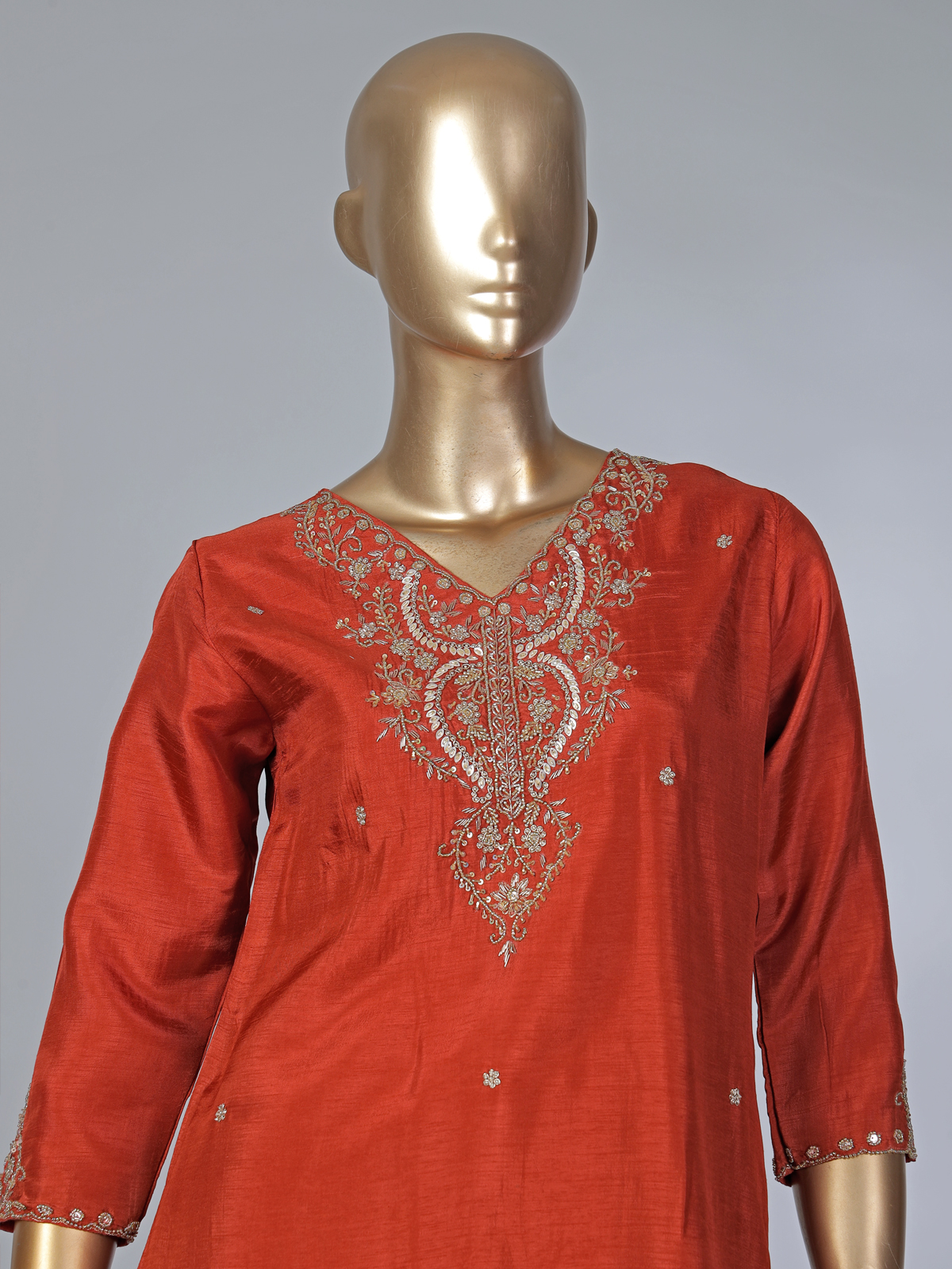 Rust Orange Silk Festive Salwar Suit With Zardosi Detailing