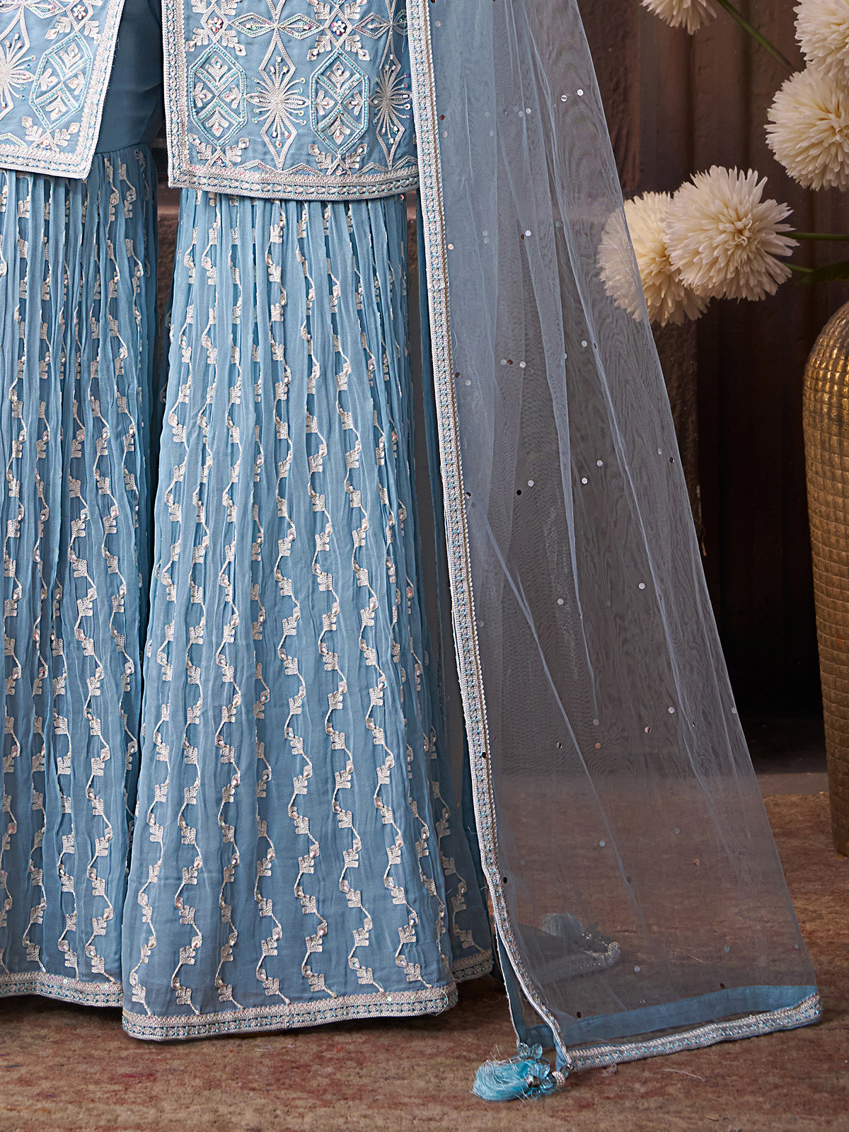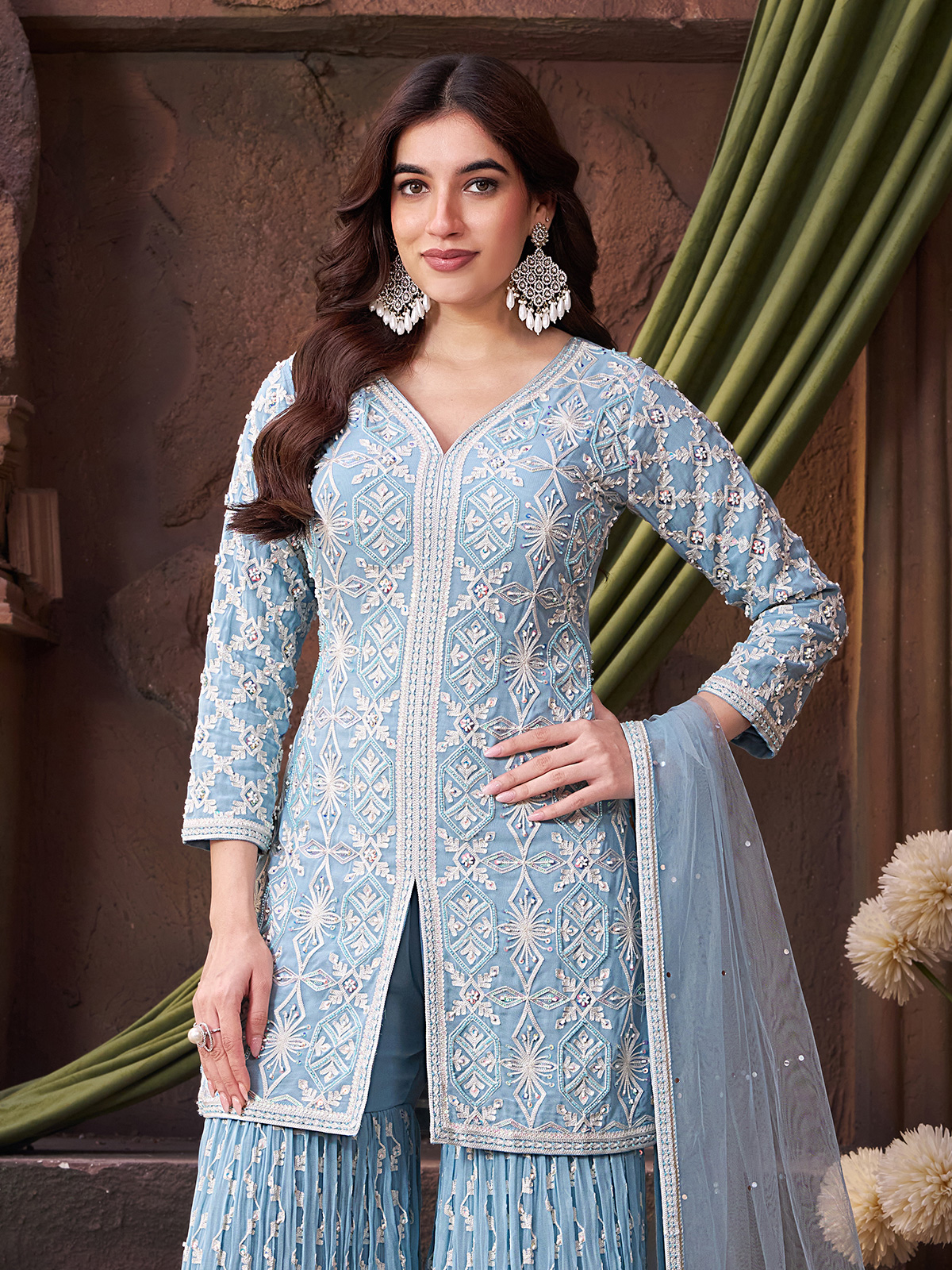 Sky Blue Georgette Sharara Suit For Women Wedding Wear