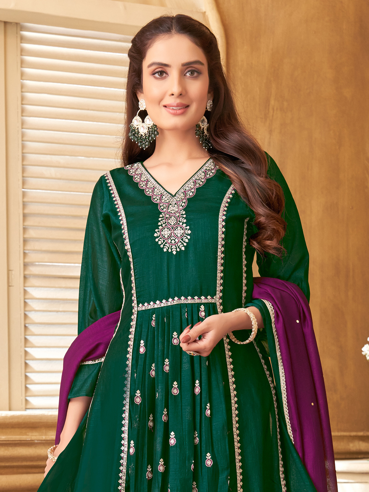 Enhance your style with this captivating black silk salwar suit. Adorned with sequins and resham work, it features a round neckline and quarter sleeves. Complete with a matching dupatta, it’s the perfect addition to your wardrobe.