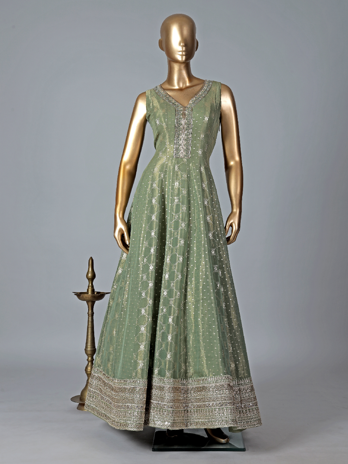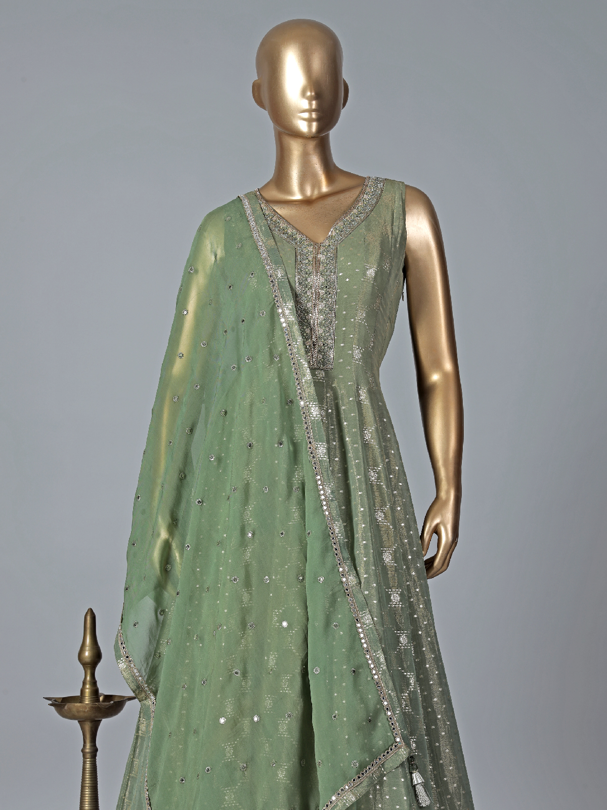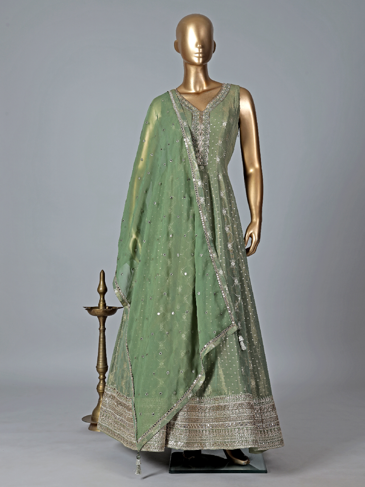 Stylish Sage Green Silk Anarkali Suit
