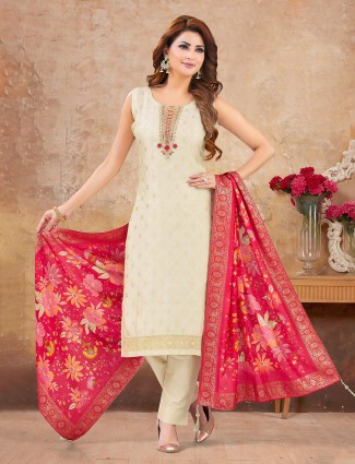 White Cotton Silk Salwar Suit With Dupatta