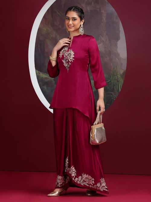 Wine Crepe Silk Indo Western Suit