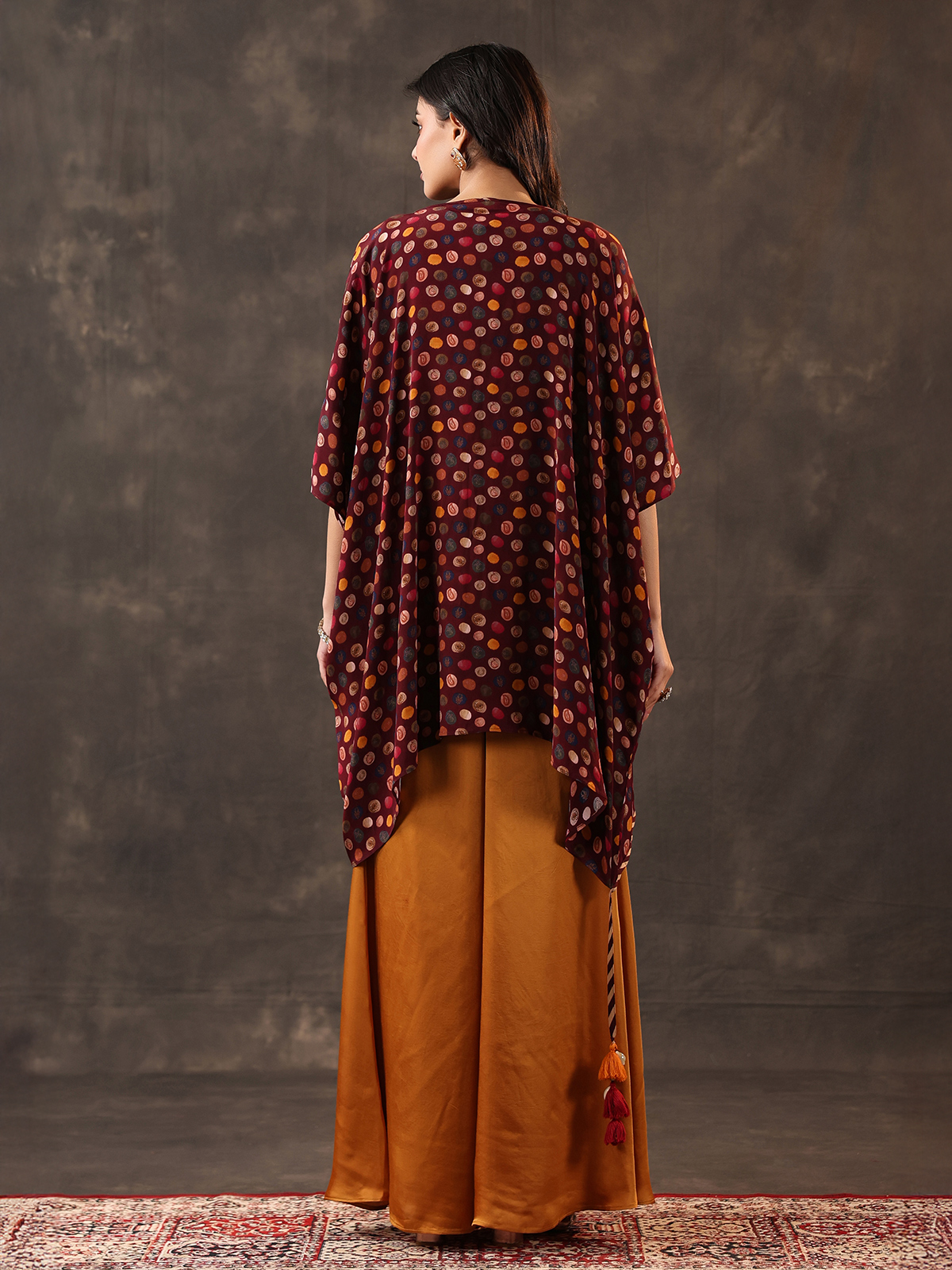 Wine Yellow Crepe Silk Jacket Style Palazzo Suit