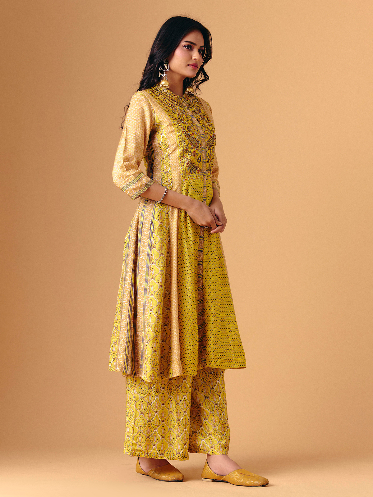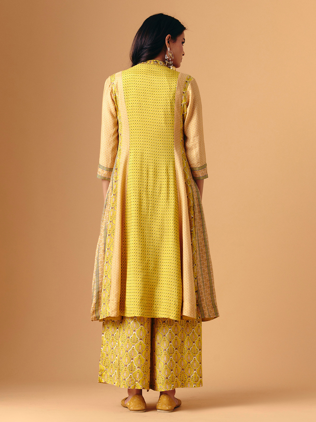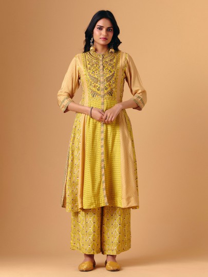 Yellow Cotton Silk Band Gala Palazzo Suit