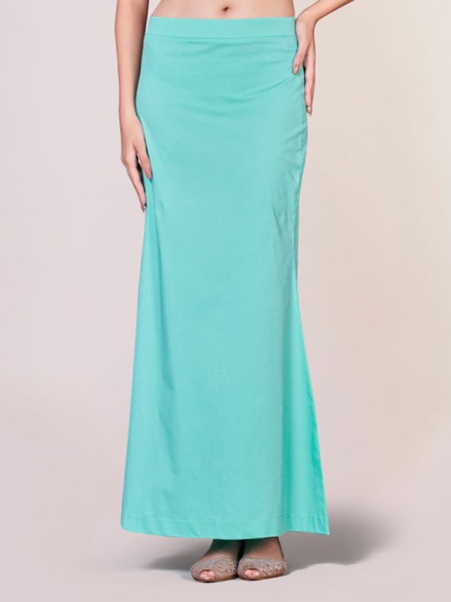 Stay comfy in this aqua plain saree shaper crafted from lycra cotton. The elastic waistband adds to the comfort, providing the perfect finishing touch to your saree looks.