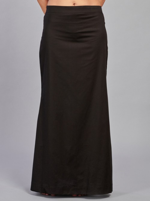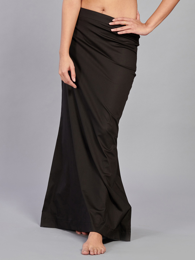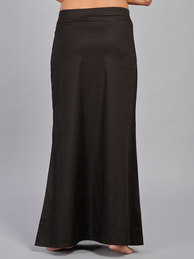 Crafted from lycra cotton fabric, this black plain saree shaper petticoat ensures comfort throughout the day. The elastic waistband contributes to a perfect saree look with style and ease.