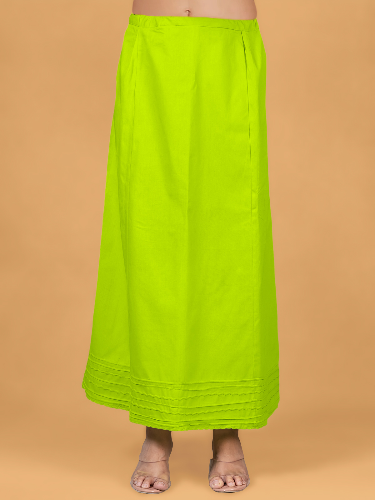 This bright green cotton plain saree petticot offers a comfy saree look. The drawstring waistband provide a stylish and comfortable look.