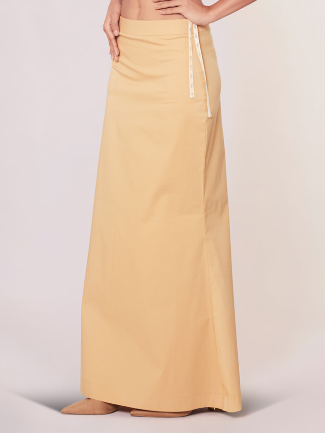 Style your sarees with ease using this cream plain lycra cotton petticoat. The elastic waistband enhances comfort, offering a perfect blend of style and ease for a polished appearance.