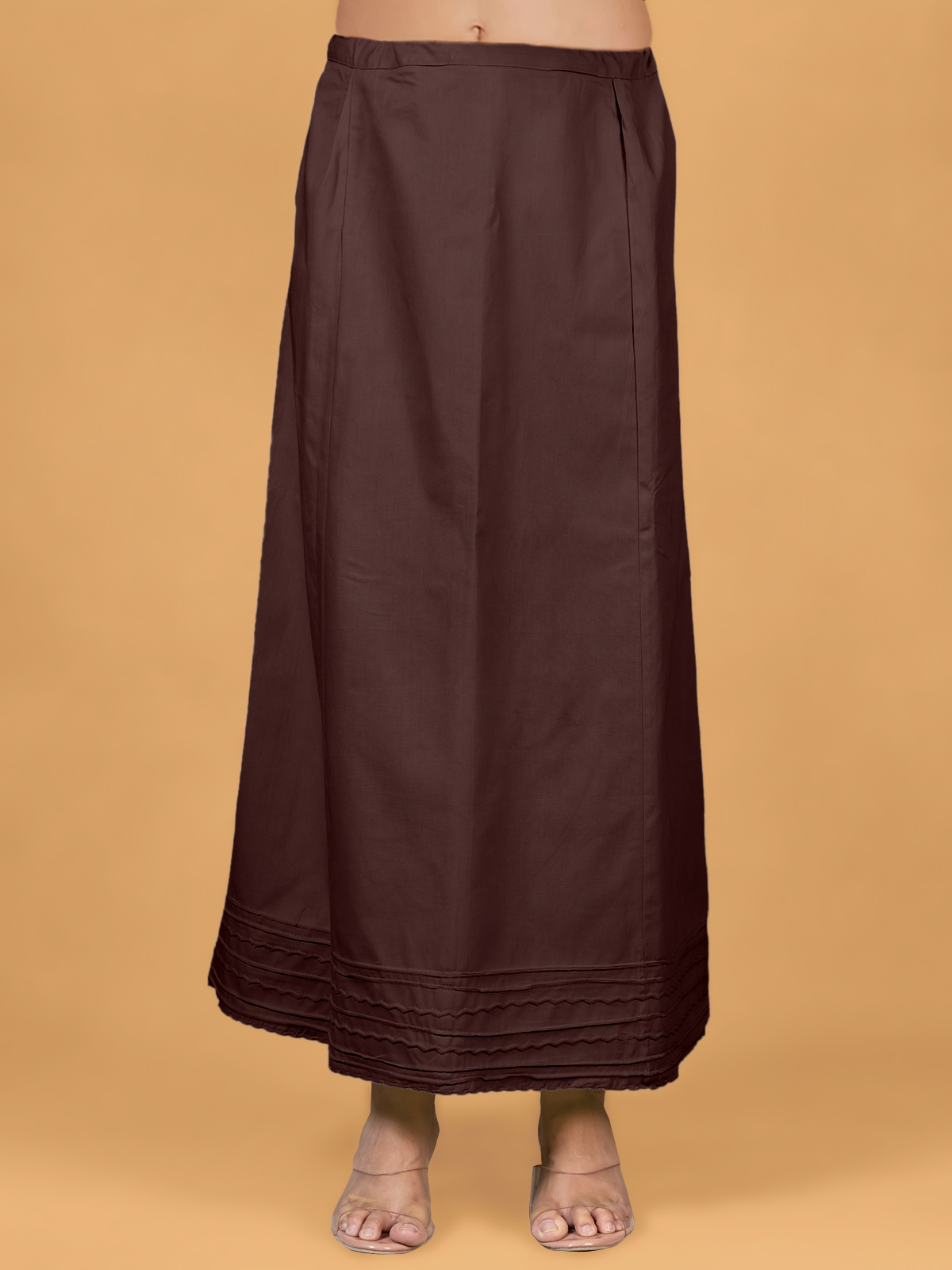 Style this dark brown plain petticoat for a comfy saree look. Made from cotton fabric, features an drawstring waistband.