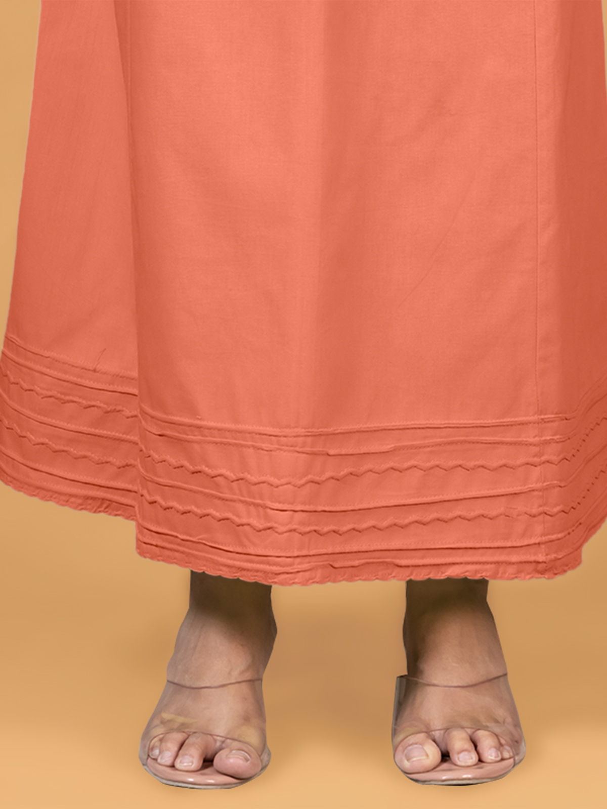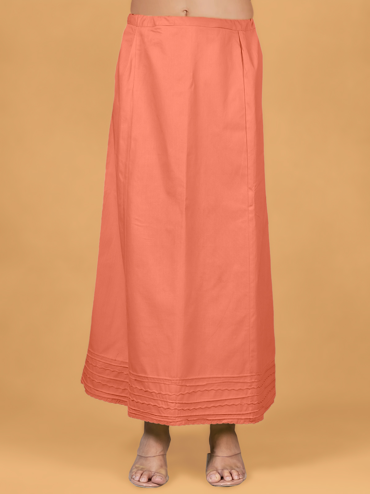 This dark peach plain cotton saree petticot is versatile and can be worn on various saree. It has an drawstring waistband to look cool and comfy.