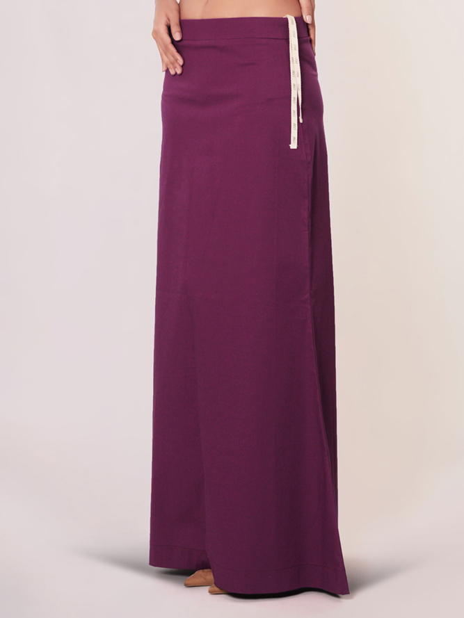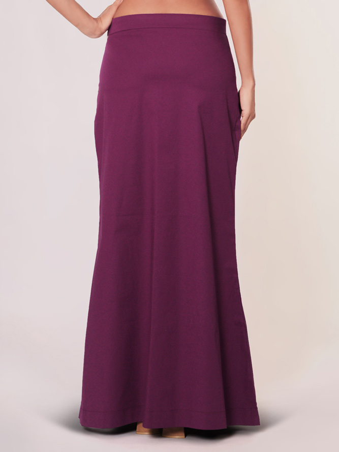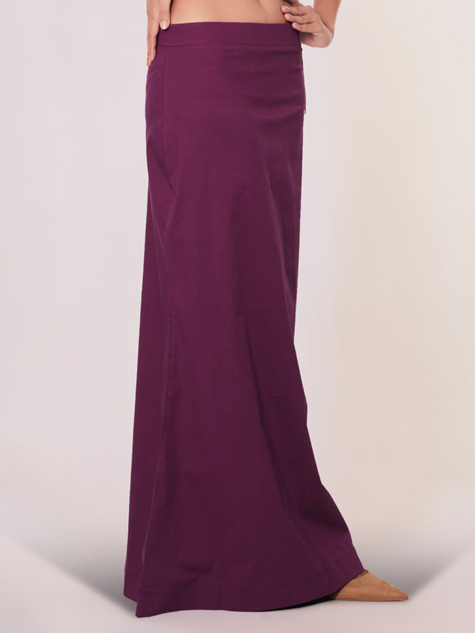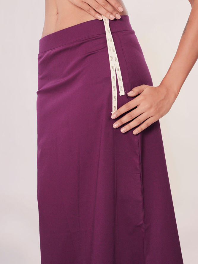 This purple plain saree shaper petticoat, crafted from lycra cotton fabric, guarantees day-long comfort. The elastic waistband contributes to achieving a perfect saree look with a touch of style and ease.