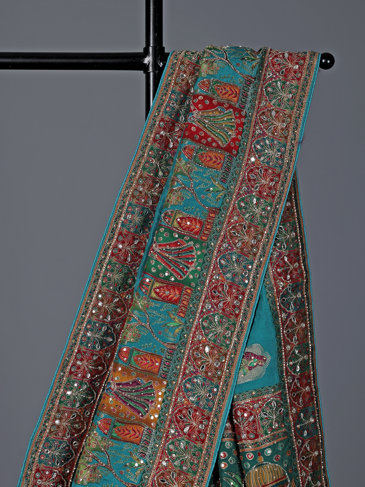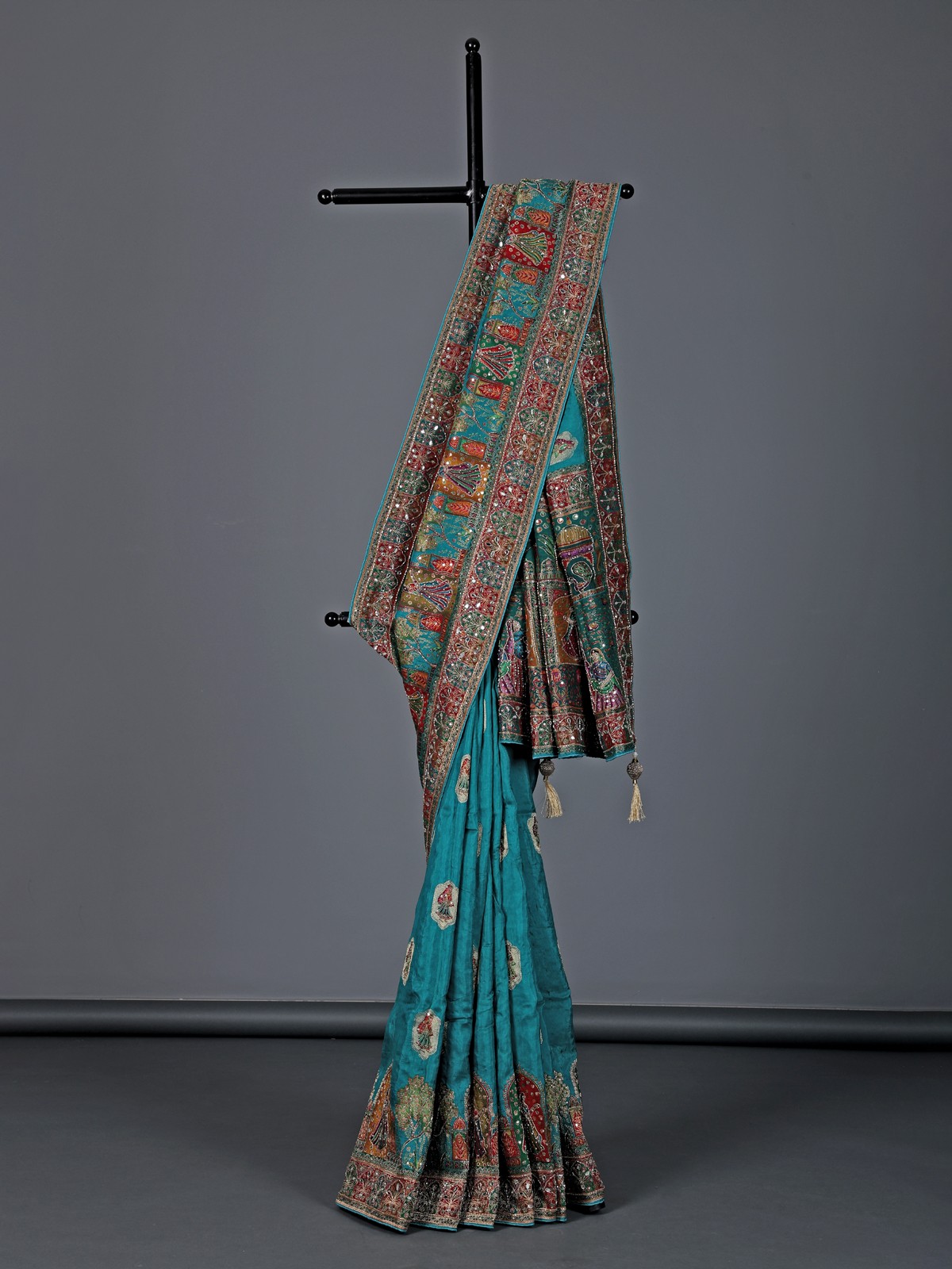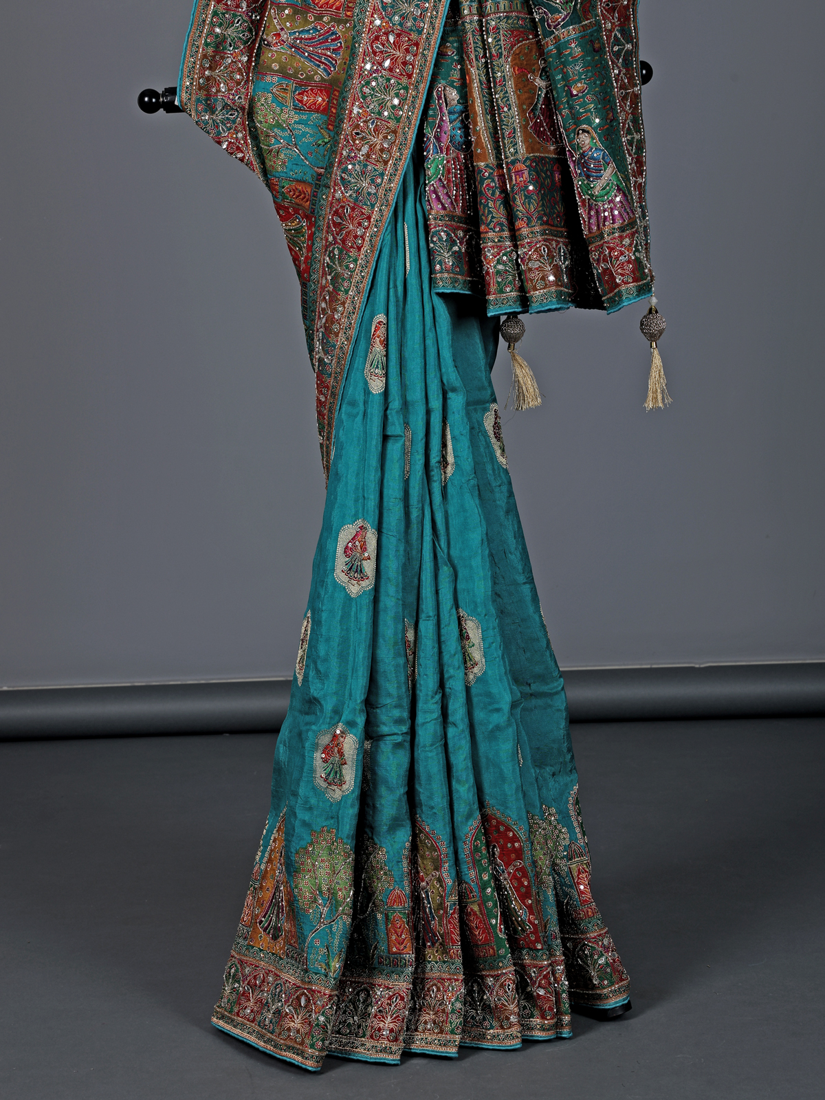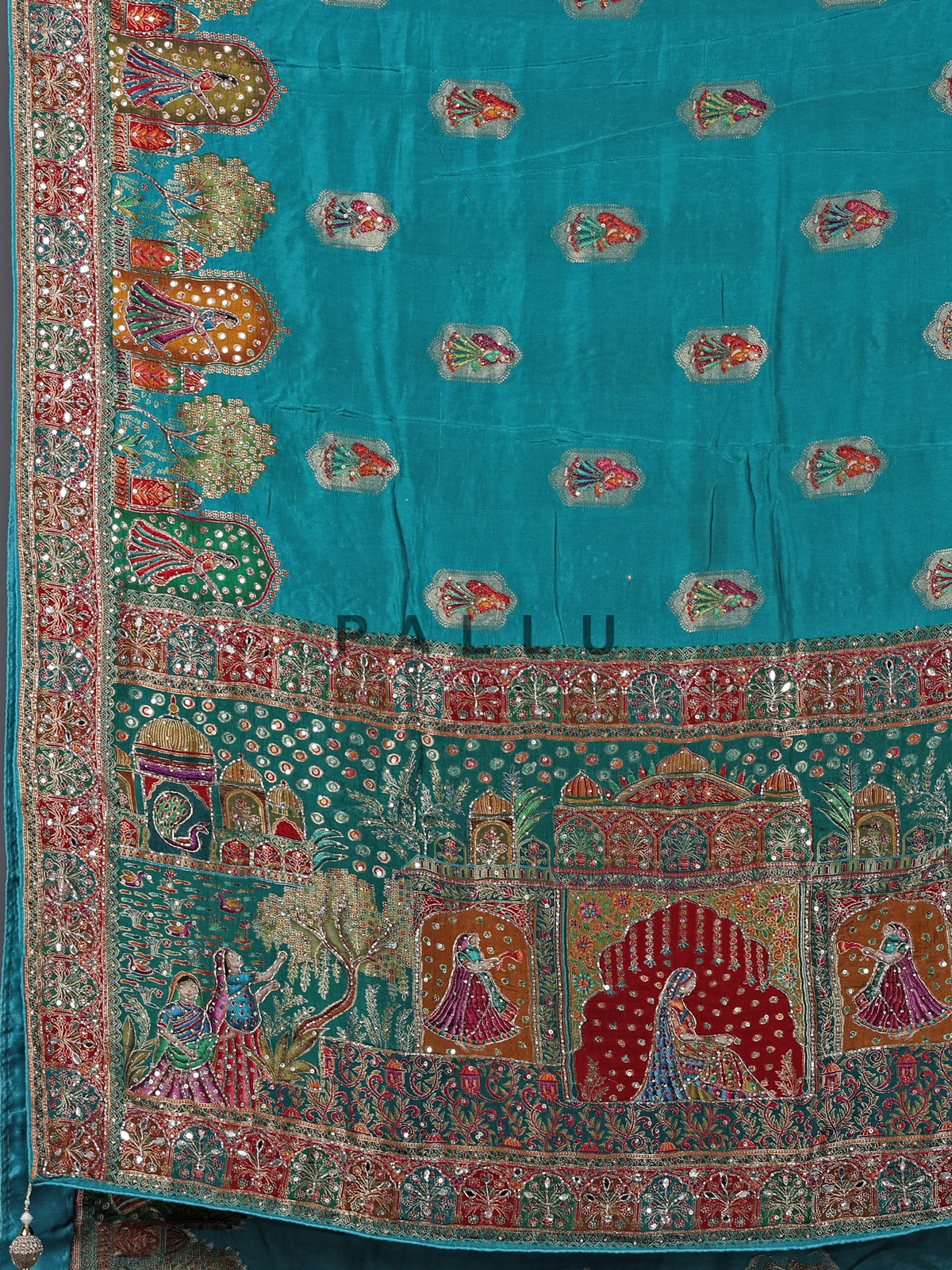 Aqua Blue Art Silk Zardosi And Mirror Work Saree