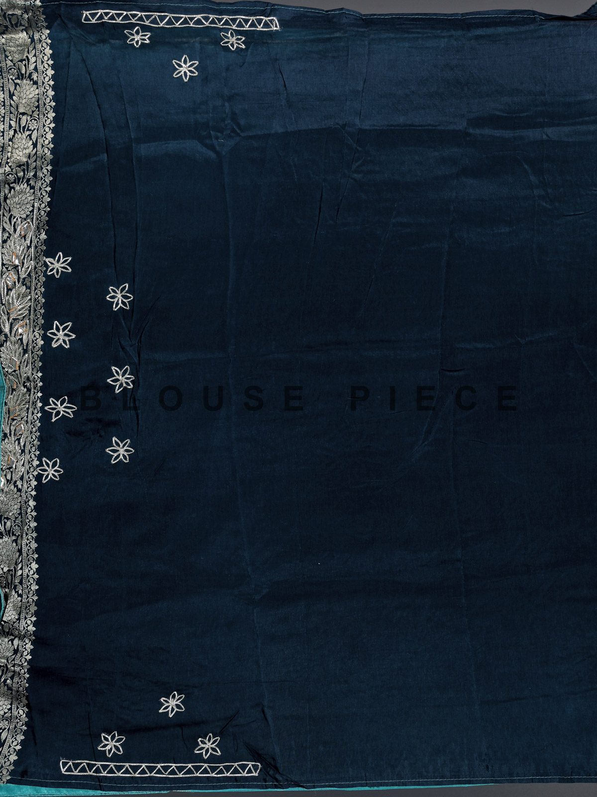 Cool and captivating aqua blue bandhej silk saree blends tradition with elegance. The intricate bandhej print paired with gota and zari work adds festive charm. Designed for weddings and celebrations. It comes with an unstitched blouse piece for a personalized and graceful appeal.