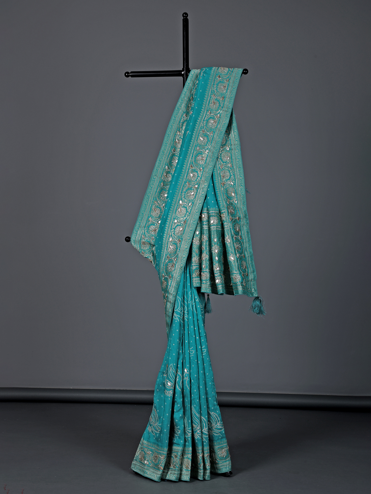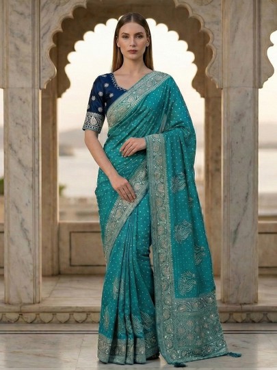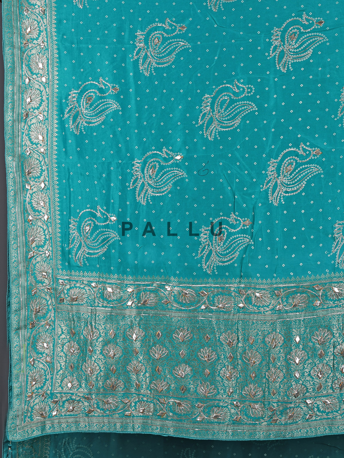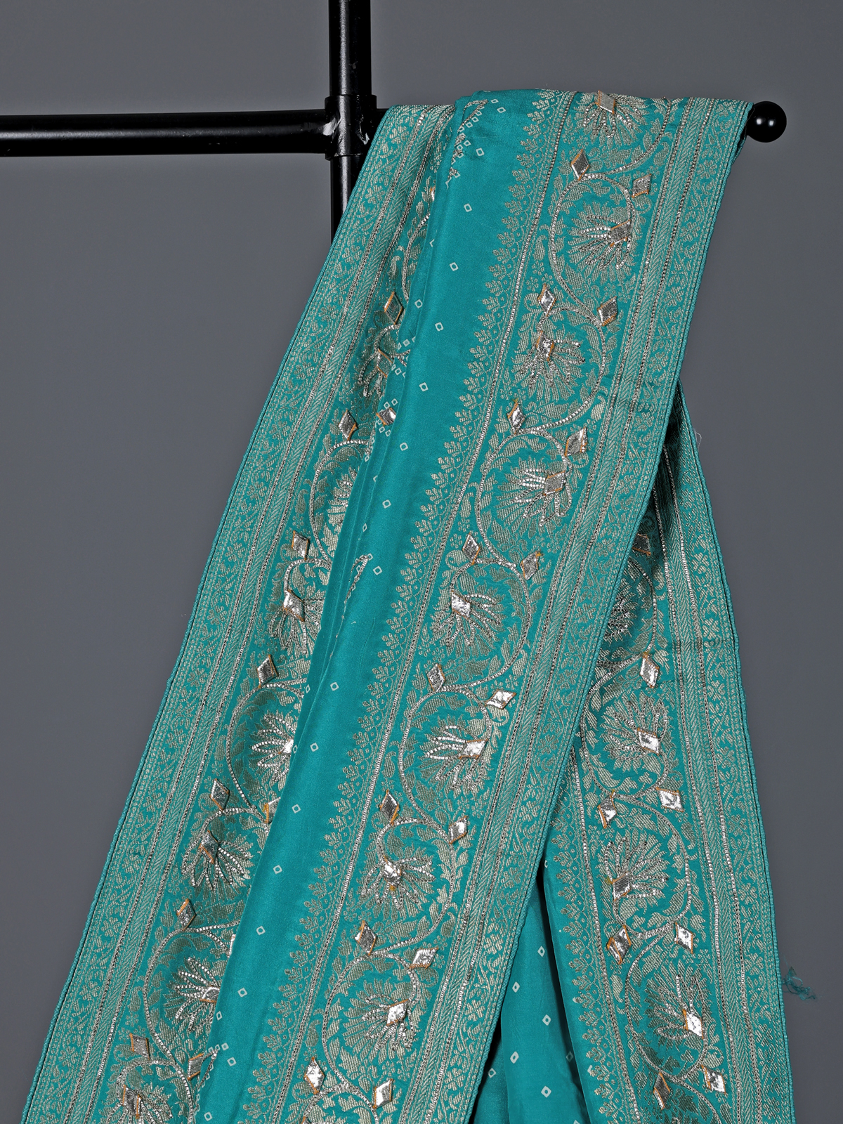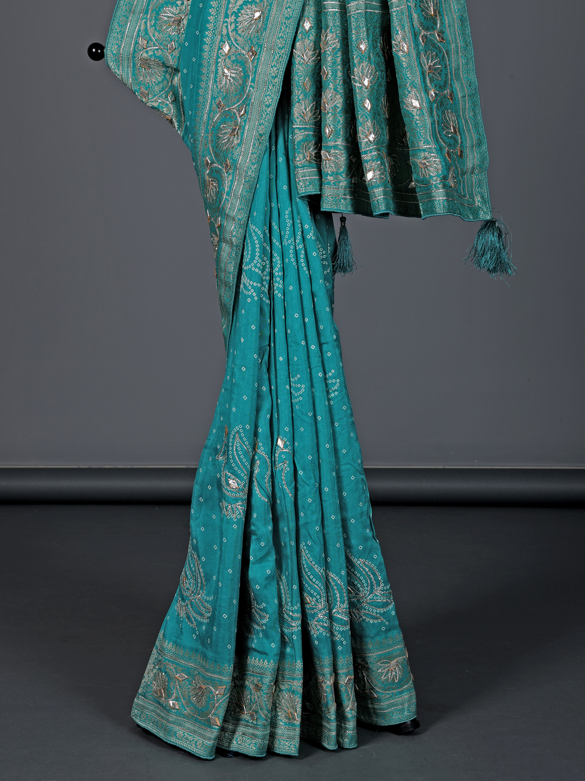 Aqua Blue Bandhej Silk Gota And Zari Occasion Saree