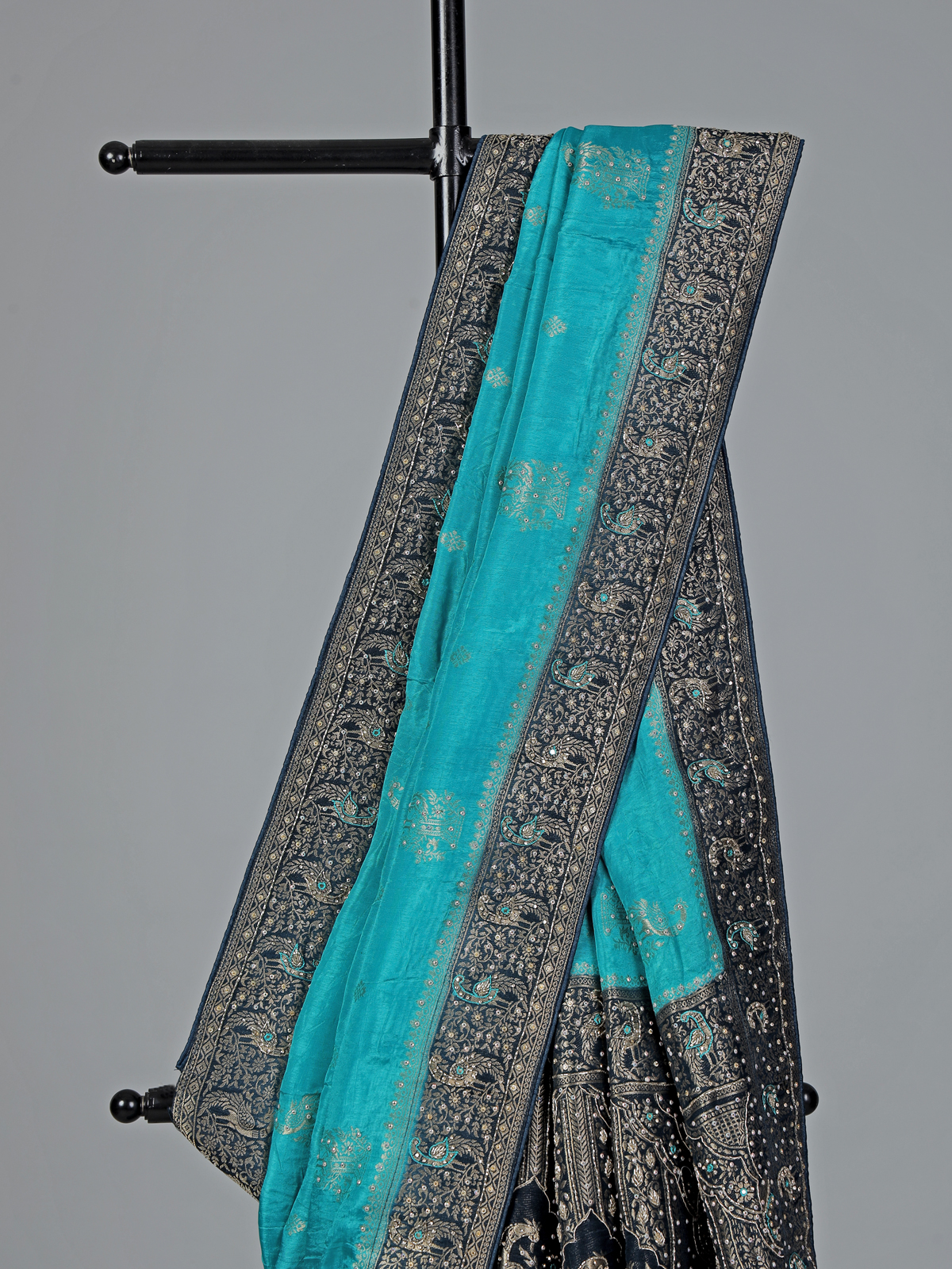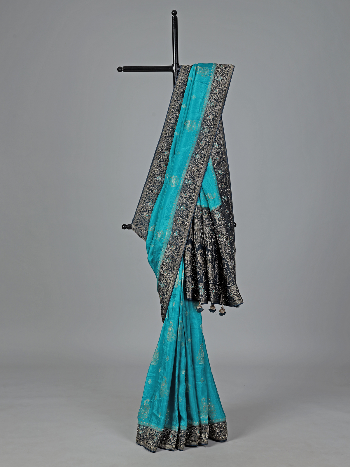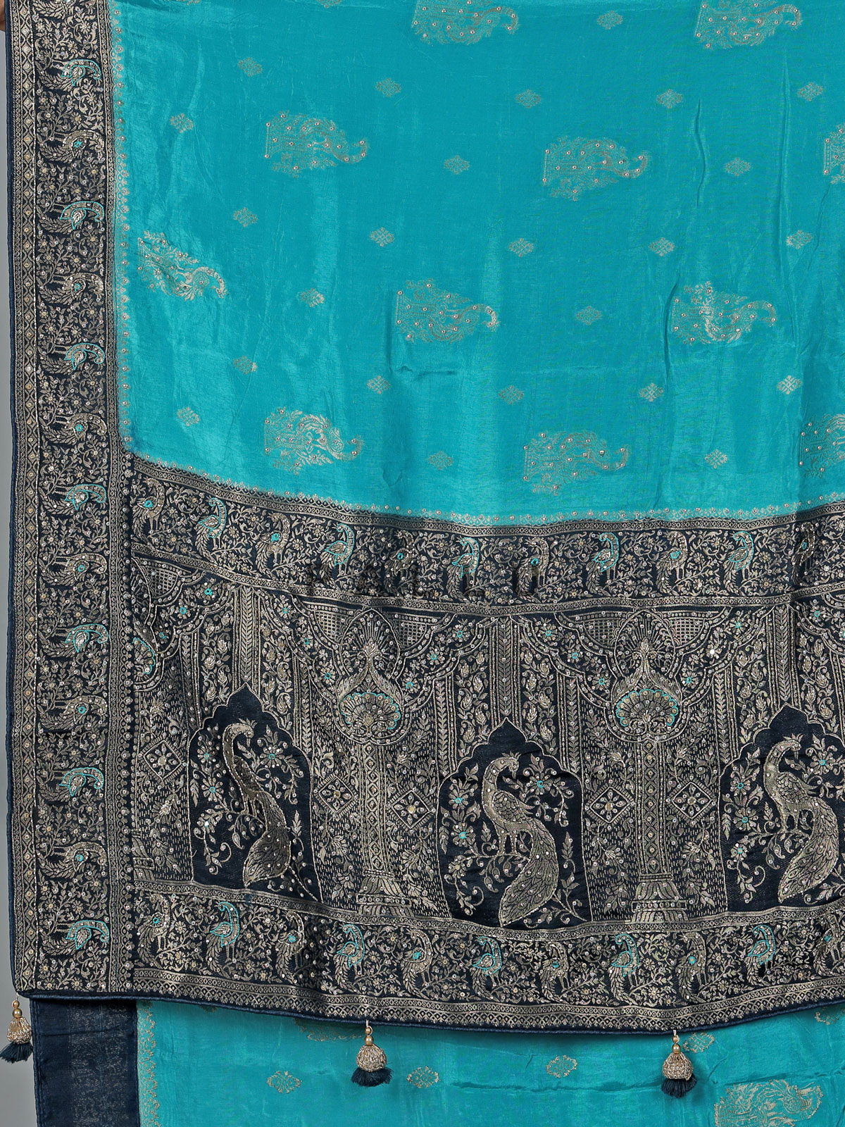 Aqua Blue Dola Silk Saree With Heavy Embellishment