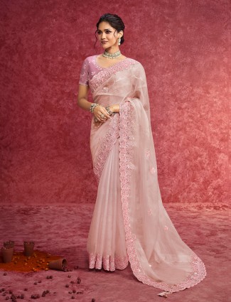 Baby Pink Tissue Silk Saree With Richly Adorned Border