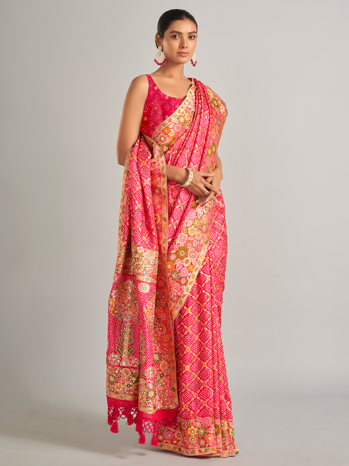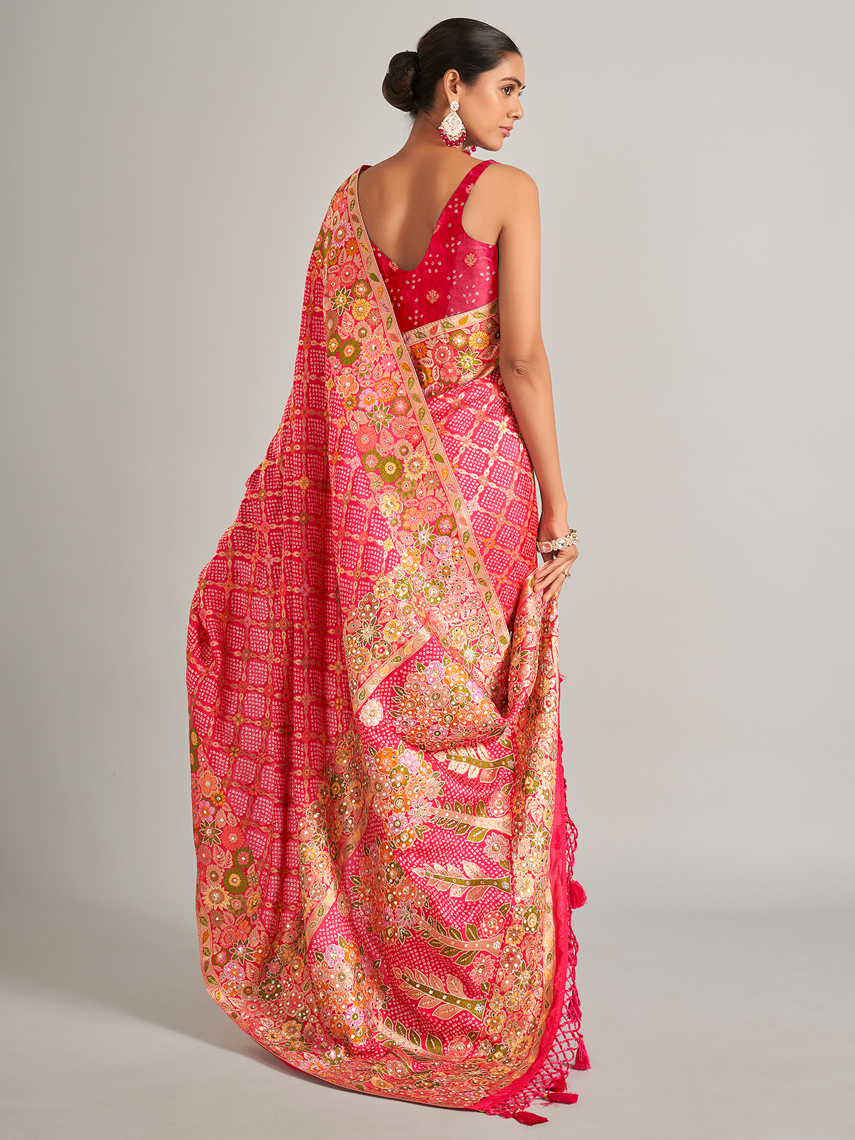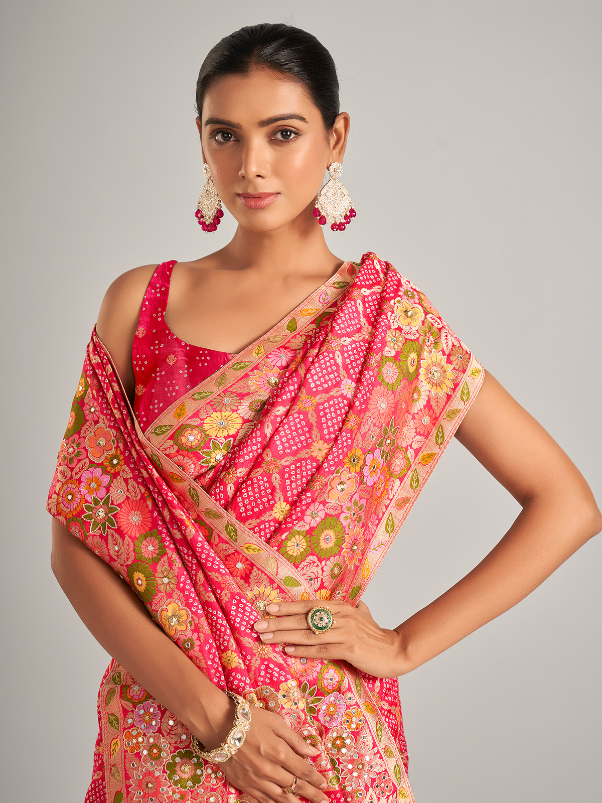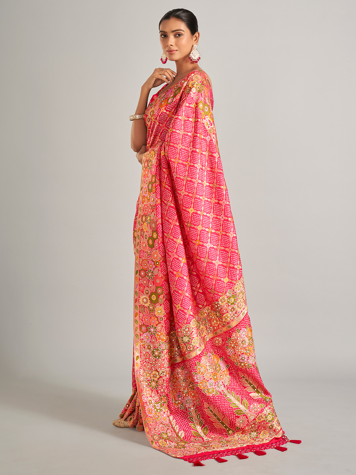 Beautiful Bandhani Printed Pink Silk Saree